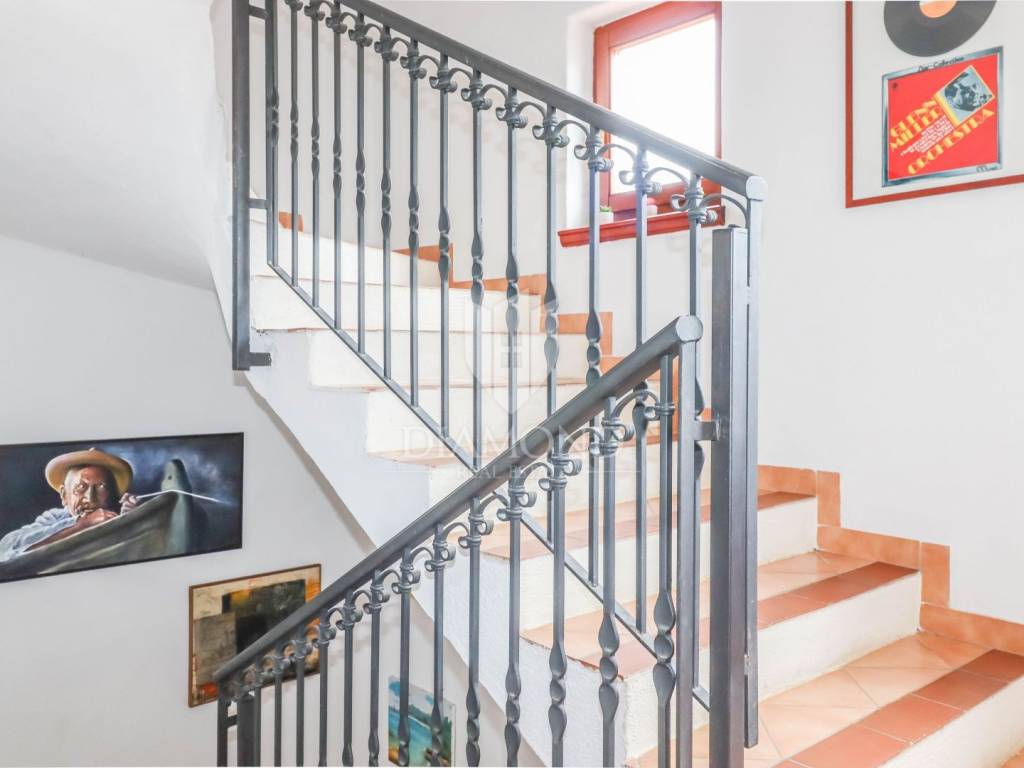 Just a few kilometers from the beautiful town of Rovinj, there is this stunning house with a commercial space. The house is located on a quiet street surrounded by family homes and greenery, while the sea is just over 2 km away.