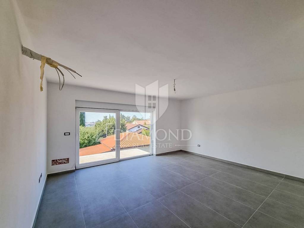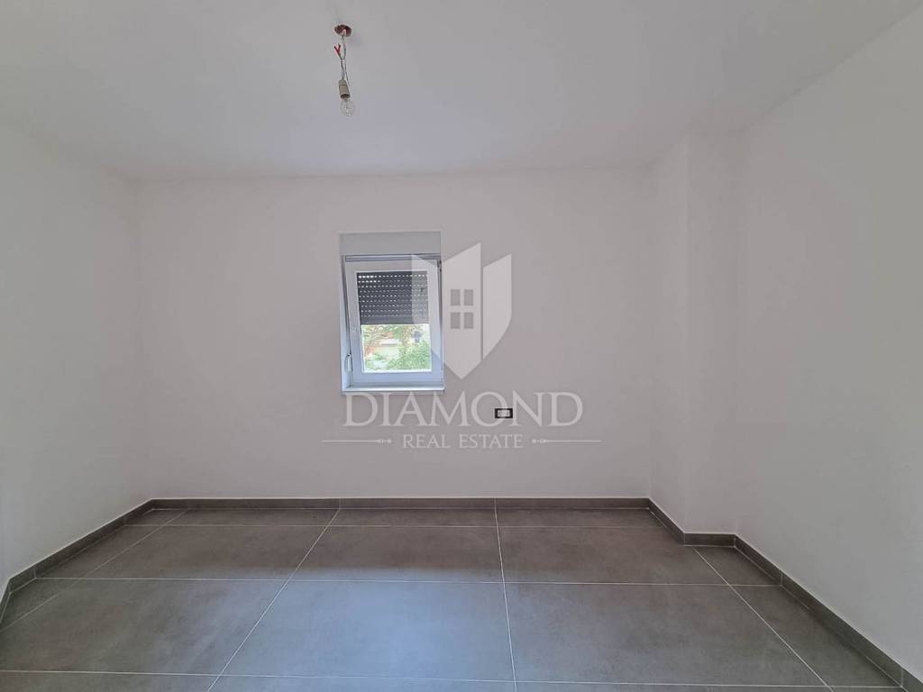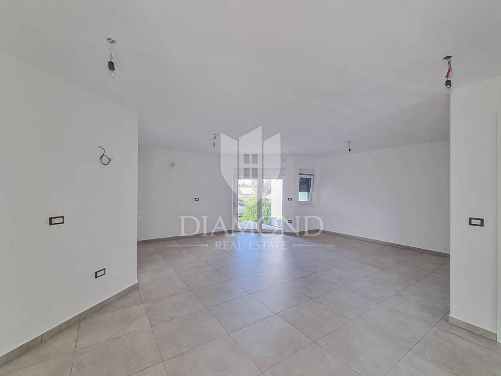 The apartment is located on the 1st floor of a modern building with a total of 8 apartments. The total area of the apartment is 67 m2. It consists of a living room with kitchen and dining room, 2 bedrooms, bathroom and terrace. The apartment also has a garage, one parking space and a storage room in the basement. It is of high-quality construction with heating and cooling by air conditioning.