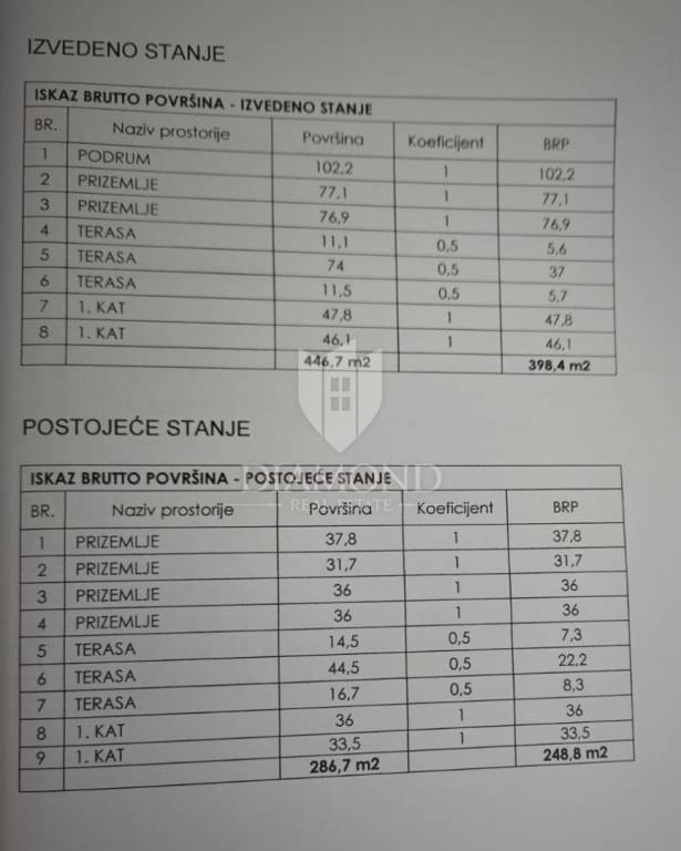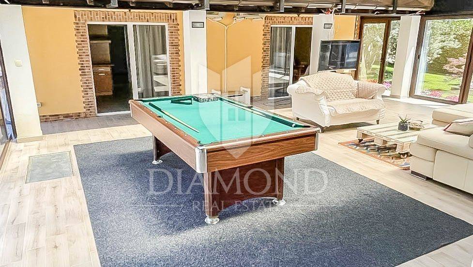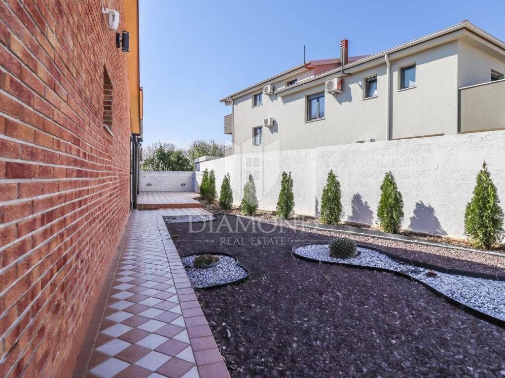 The house is detached with an area of 450m2 and a beautiful garden. The ground floor of the house has four apartments that have a common central part of the house, which is designed as a space for socializing or a living room. The apartments are 65m2 in size and have a living room with a kitchen, a bedroom with access to the terrace, a bathroom and a gallery that serves as a second bedroom. The central part of the house, i.e. the living room, has access to the terrace and landscaped garden on both sides of the house, and the glass walls contribute to the light of the space itself. The yard next to the terrace is ideal for a swimming pool. From the terrace, a staircase leads down to a large summer kitchen with a brick grill. Next to the summer kitchen is the entrance to the fifth apartment in the basement of the house. It consists of a spacious living room with a beautiful fireplace, a kitchen with a dining room, one bathroom and three bedrooms. The house has two entrances and two parking lots.