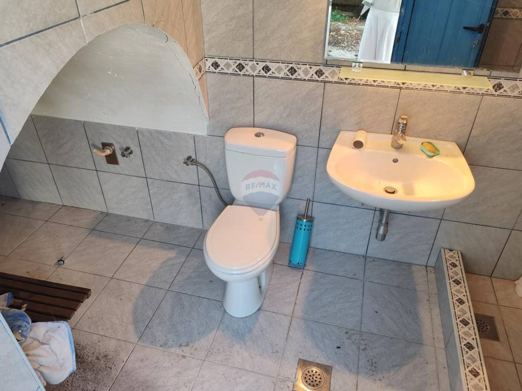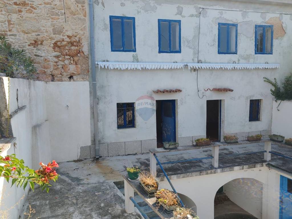 The terraced house, measuring 158 m2, consists of a spacious courtyard, two taverns and a bathroom on the ground floor, external stairs lead to the house, which consists of two floors.