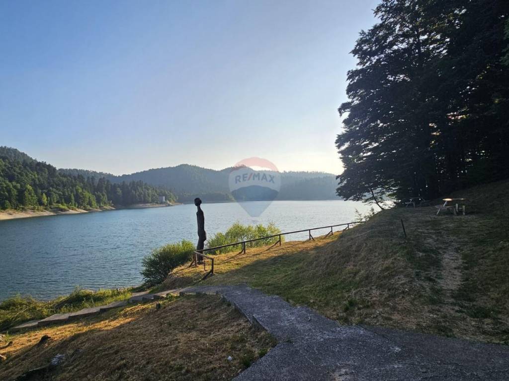 Parcela je smještena uz novo dječje igralište, s malim putem koji vodi prema livadi, a pruža prekrasan pogled na branu Lokvarskog jezera i vrh Špičunak.