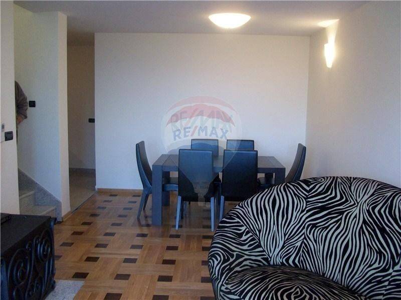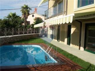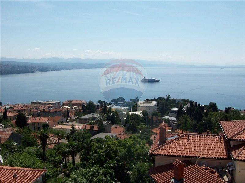 OPATIJA - Stan u novoj kući od 111 m2 na prvom katu sa lijepim pogledom na more i Opatiju. Stan je u biti 3S+DB. Svaka soba ima svoju kupaonicu, i klimu. Grijanje je centralno na struju. Osigurano parkirno mjesto u zatvorenom parkiralištu. Kuća je izgrađena prije tri godine. Bazen sa ostalim stanarima na korištenje.