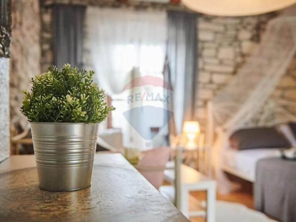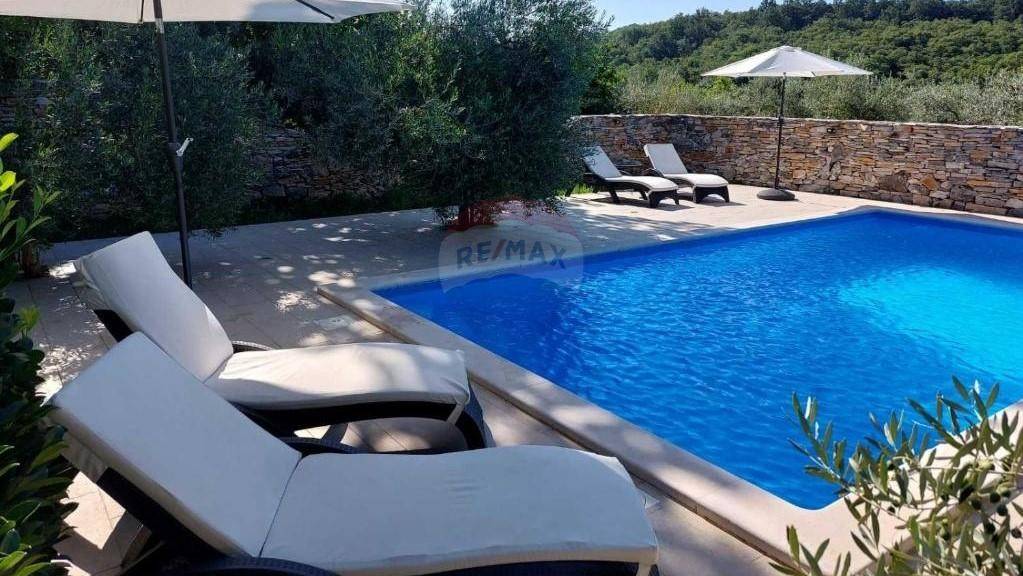 U sklopu konobe i soba za odmor nalazi se predivno uređena okućnica, bazen i građevinsko zemljište, idealan spoj posla i obitelji na jednom mjestu.