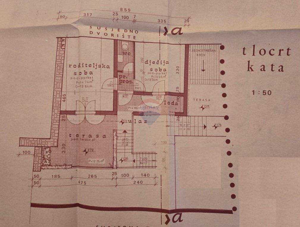 In a perfect location in the center of Rovinj, just steps from the city waterfront, we are selling an excellent property ideal for both living and tourism. The house was built in the 1970s and is spread over two floors: ground floor and first floor. The usable floor area is 46 m². On the ground floor there is a living room, kitchen, bathroom, and one bedroom. Upstairs there are two large bedrooms — one with access to a spacious terrace of 12 m², and the other with access to a 5 m² loggia. There is a toilet between the rooms. In front of the house is a private yard of 25 m².