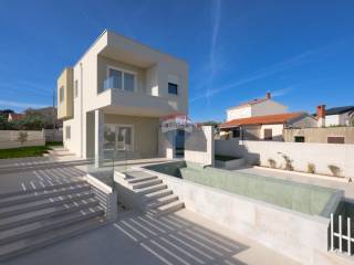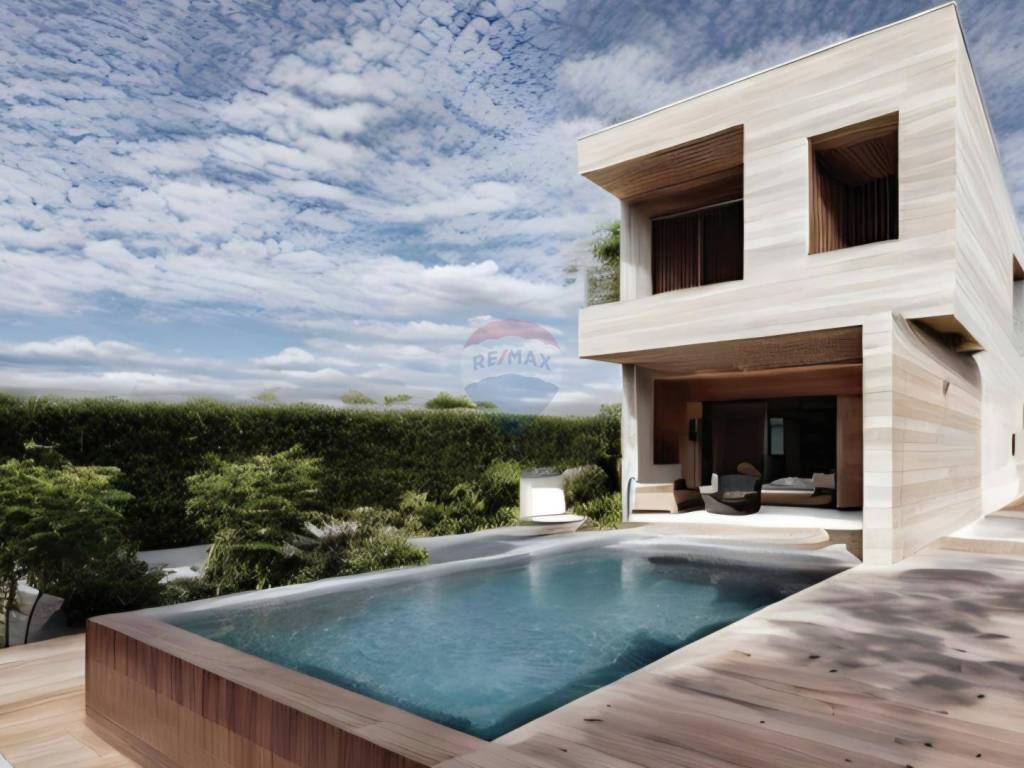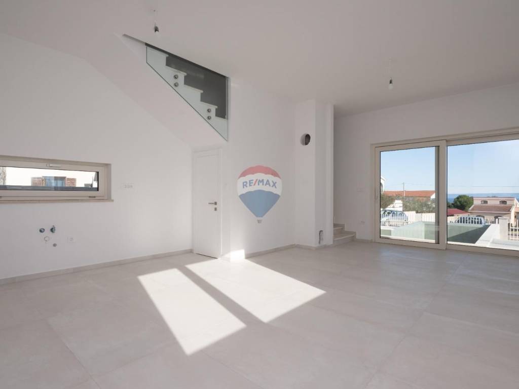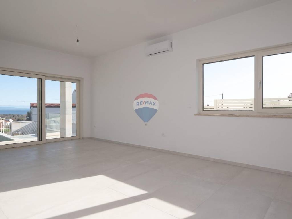 RE/MAX Centar Nekretnina is proud to present this stunning house in a truly unique location—perched on a peaceful hillside that offers natural privacy and an uninterrupted view of the open sea. This villa, currently under construction, is designed as a turnkey project with a total net area of 176 m² spread over two floors.