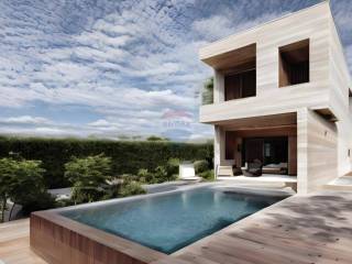 Top-quality materials have been carefully selected to ensure every corner exudes sophistication—stone façade, custom-colored joinery, stone terraces, lush tiered landscaping, and a discreet aluminum fence that preserves privacy without blocking the view. The villa will be equipped with underfloor heating throughout, air conditioning in all rooms, private parking spaces, and thoughtfully designed outdoor landscaping.