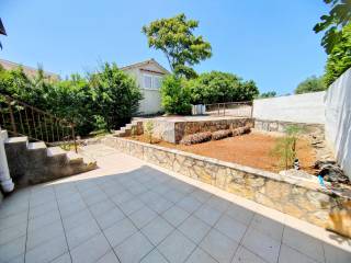 First floor (accessible via an external staircase): Two-bedroom apartment with a kitchen, two bedrooms, a bathroom, and a balcony offering a beautiful sea view.