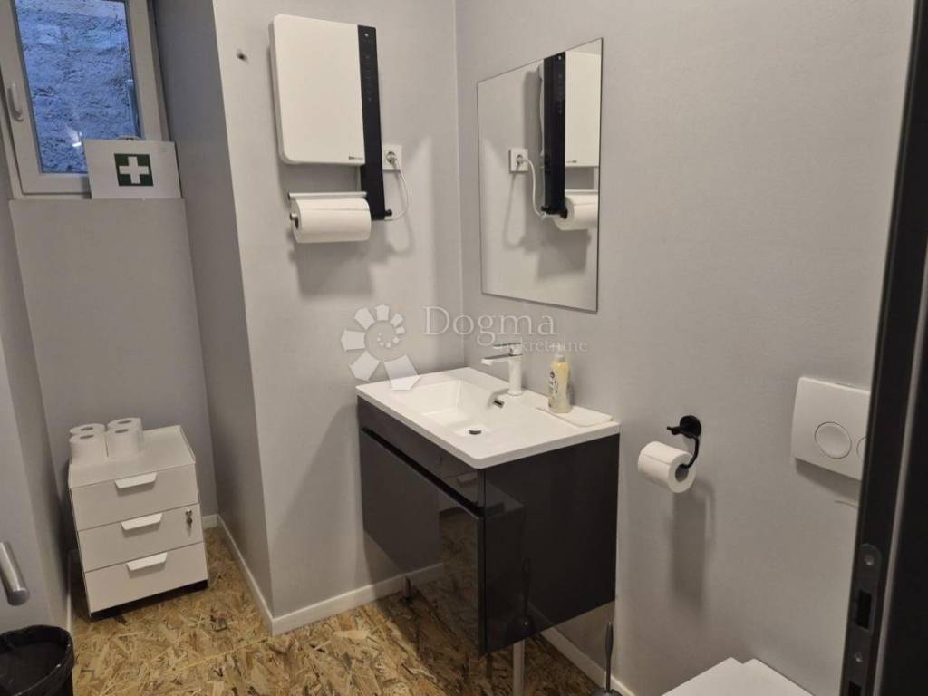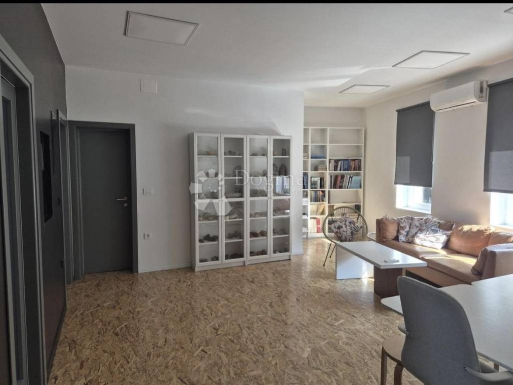 Prostor se sastoji od tri zasebne uredske prostorije, zajedničkog prostora koji može služiti kao dnevni boravak, open space ili prijem klijenata, te kupaonice s WC-om. U potpunosti je opremljen kvalitetnim uredskim namještajem i spreman za korištenje odmah, bez potrebe za dodatnim ulaganjima.