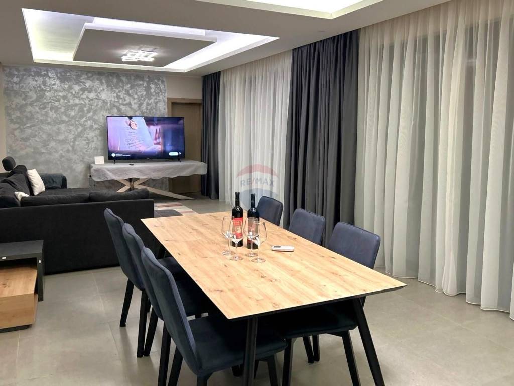 The villa consists of a spacious and bright living room connected to a modernly equipped kitchen and dining room. From the living room, a large glass wall leads to a spacious uncovered terrace – an ideal place to enjoy warm summer evenings and socialize outdoors.