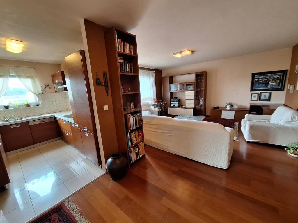 KASTAV - For sale is a three bedroom apartment of 109 m2 with three beautiful terraces, located in a newer building, in a quiet street, in a great location. There is a tiled wood stove in the apartment, underfloor heating is installed in the tile area, and there is also air conditioning. It has a basement storage of 2.34 m2 and two outdoor parking spaces. The apartment is sold furnished with quality furniture, mostly custom-made.