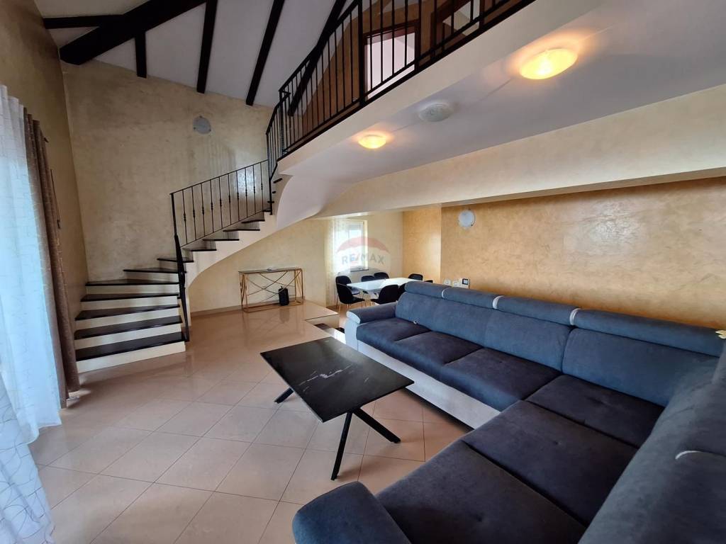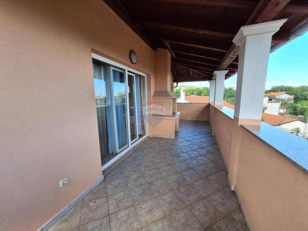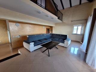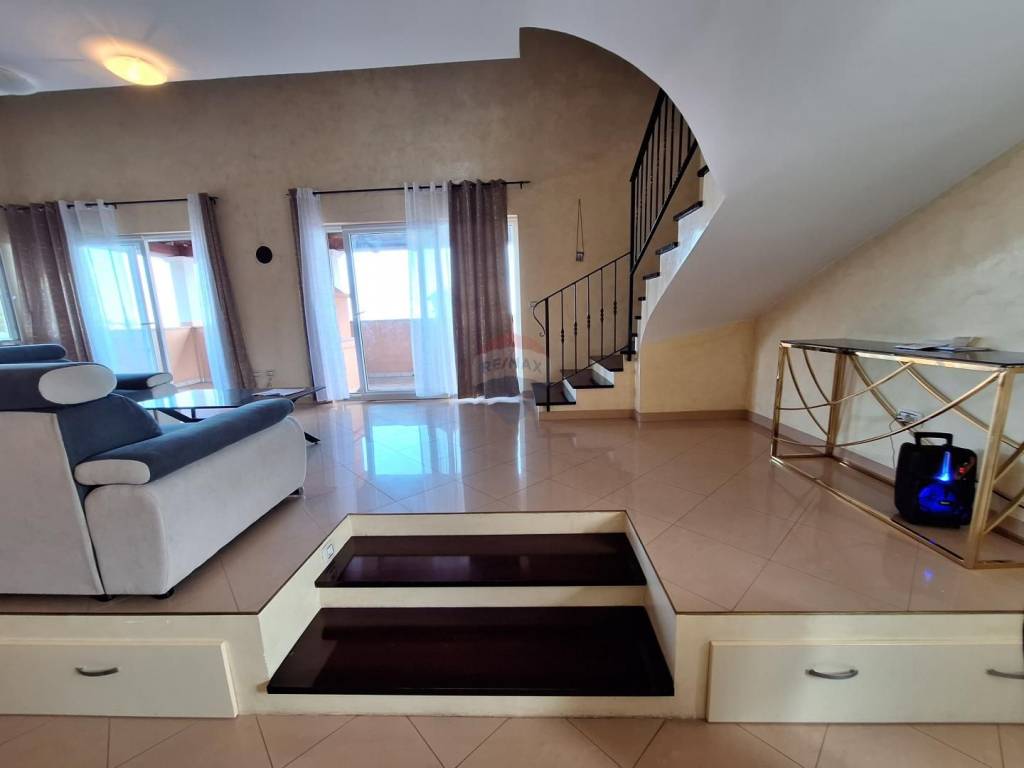 The apartment consists of a covered entrance terrace, hallway, bedroom, bathroom, kitchen, dining room, storage room, living room with a covered terrace from which there is a beautiful view of the sea, and a gallery where two more bedrooms with a dressing room, bathroom and balcony are located.