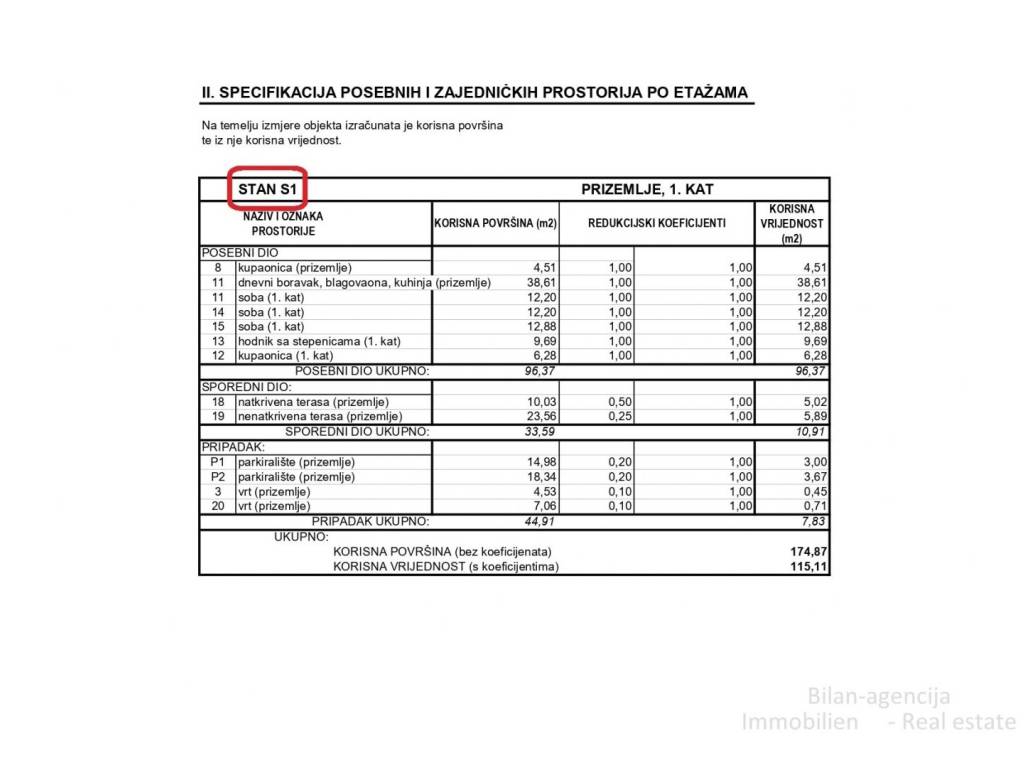 The total and actual area of all of the above is 174.87 m2.