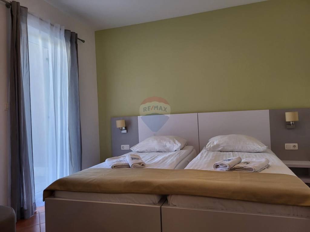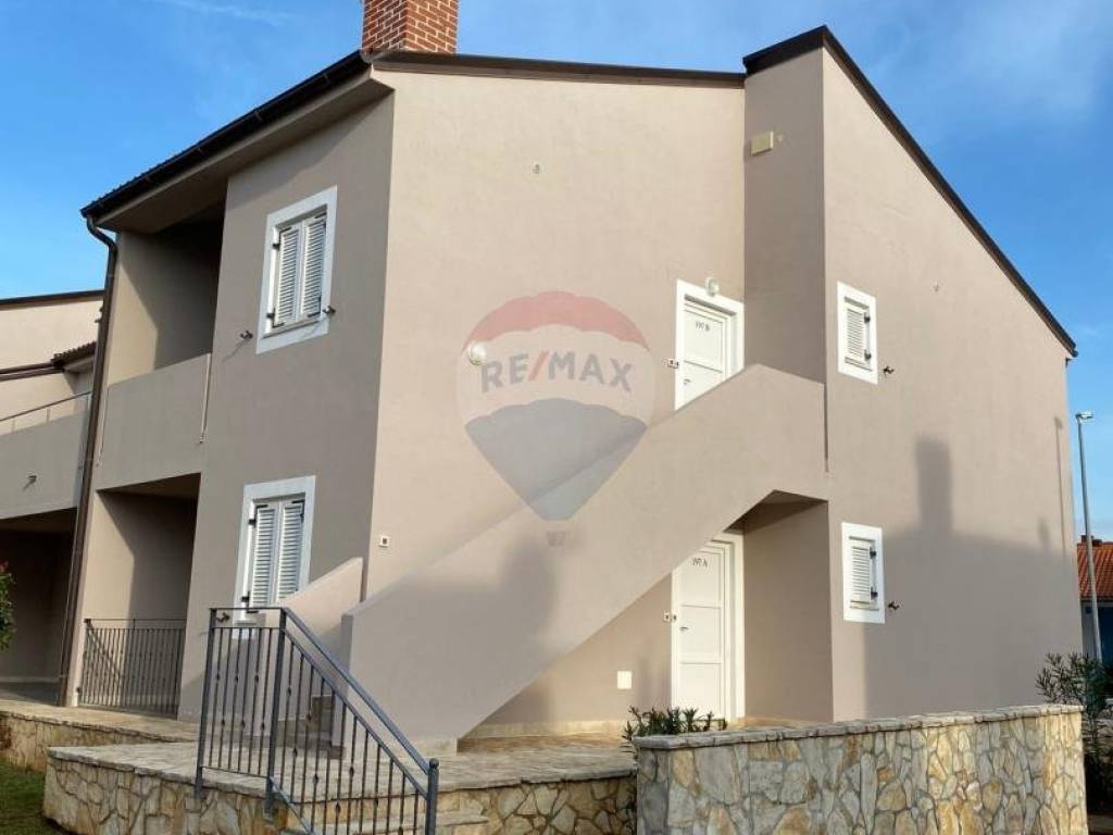 Exclusively with Remax for sale is a two-story house with two completely separate apartments in Medulin, in a quieter and neater neighborhood. It was built in 2011. It is located only 150 m from the beach. The house consists of two two-room apartments, one on the ground floor with exit to the garden and terrace and the other on the first floor, also two-room with loggia and terrace. There are parking spaces for 2 cars. The apartments have separate meters, they are split level. It is sold fully furnished. Proper documentation.
