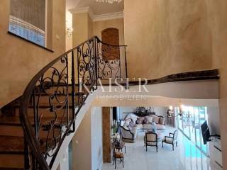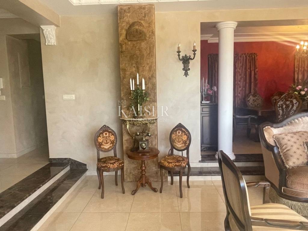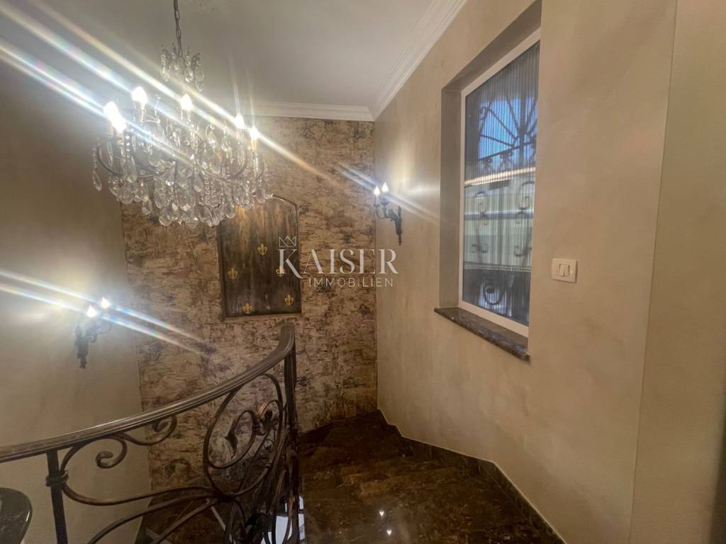 Kaiser Immobilien presents a modern and luxurious residential villa with 5 separate residential units in a part of Lovran, a few minutes' walk from the center and the sea. The villa was conceived as a residential-tourist facility, and consists of an elegant two-story apartment with an area of approx. 250 m2, which consists of a spacious living room on the lower level, from which there is access to a large terrace with an open view of the sea, while on the first floor of this apartment there are 4 bedrooms, bathrooms, and a wardrobe. The second part of the villa consists of 4 separate apartments (3x2-bedroom with living room and terrace) and a smaller studio-apartment. In the garden of the villa there is a swimming pool with a sunbathing area and a garden. Garage spaces for 5 cars and additional parking in front of the building. The property is sold fully equipped and very well furnished. The entire house is heated by a combination of central, underfloor and solar heating, and is equipped with air conditioning. Considering the location, the villa represents a great tourist potential for tourism, and can be an ideal small guesthouse for a family business. For any additional information, contact an agent.