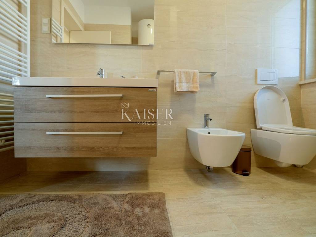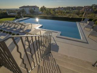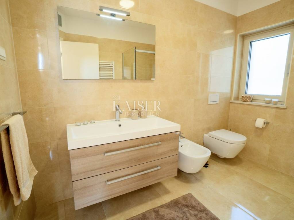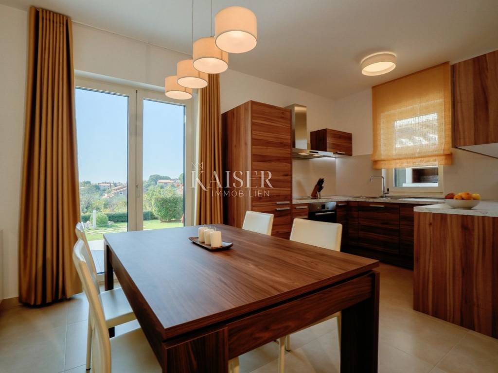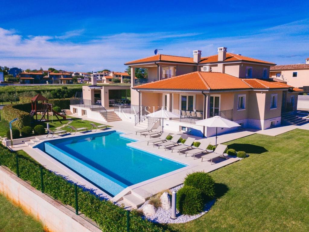 Kaiser Immobilien offers a villa with a swimming pool and a large garden, which is located in a quiet place near Poreč. There are two apartments, the smaller of which is about 60 m2. The villa consists of 4 bathrooms with showers and one separate toilet, two fully equipped kitchens and two dining rooms. Two spacious living rooms, equipped with Smart TV and a fireplace. In the courtyard of the villa you can find a swimming pool and a jacuzzi. The land is completely surrounded by a stone wall and a hedge, providing complete privacy. In the yard there is a summer kitchen with a fireplace, a swimming pool, a small football field, a children's playground and a volleyball court. The location of the villa itself is only 8 km from the city of Poreč, which means that everything you need (restaurants, bank, post office, pharmacy, etc.) is in the immediate vicinity.