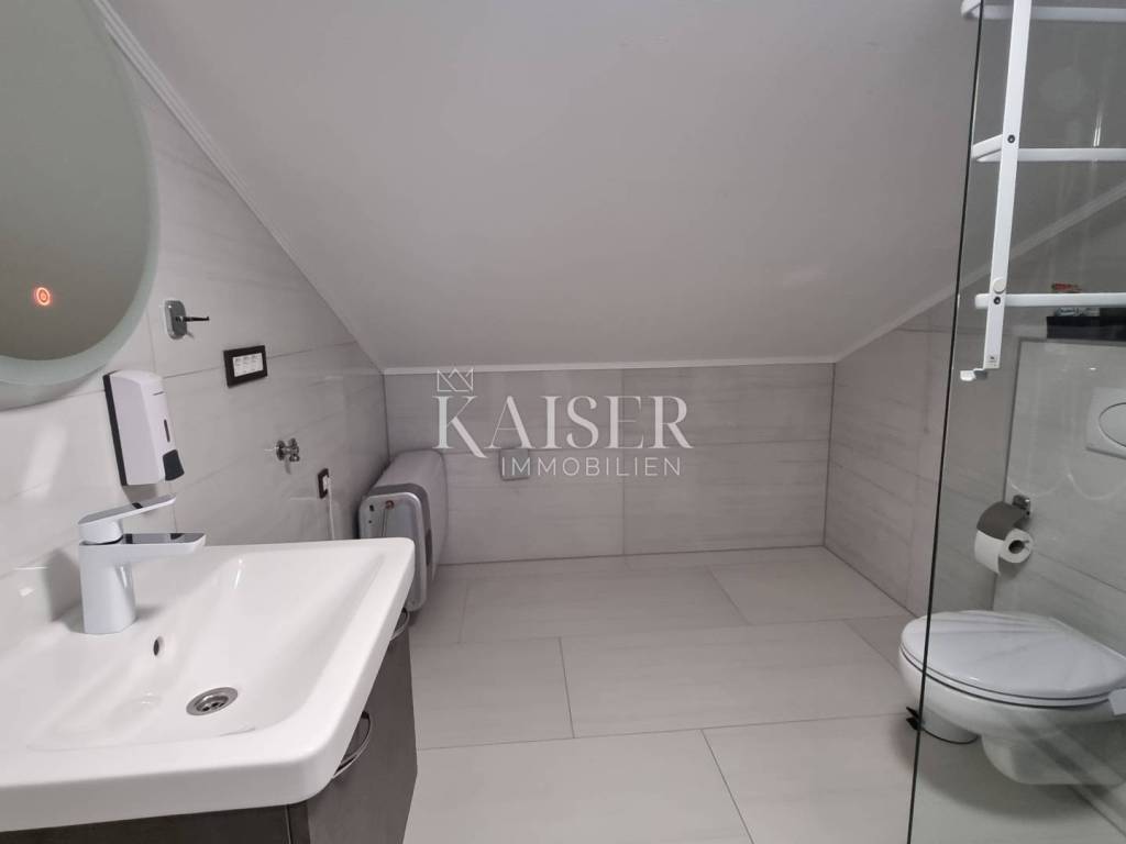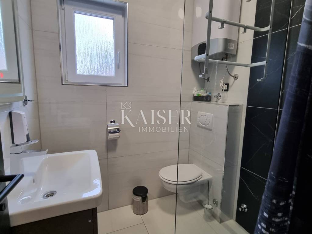 Kaiser Immobilien presents a beautiful two-bedroom apartment in the quiet town of Bribir, located just 500 meters on foot from the center and 5 km from the sea. The apartment covers an area of 75.35m2 and was built in 2023. The apartment consists of two bedrooms, two fully equipped bathrooms (both with walk-in showers), and a kitchen that needs to be furnished, connected to the living room that leads to a terrace with a panoramic sea view. The southern orientation ensures plenty of natural light throughout the day, creating a bright and warm atmosphere. The kitchen has all the necessary connections. A special convenience is provided by one parking space, while electric shutters and preparation for your own electric car charging station contribute to the additional value of the property. The apartment is fully furnished and equipped with Clivet air conditioning and electric underfloor heating, which makes it comfortable to stay in all seasons. The energy efficiency of the apartment is B class, which ensures lower heating and cooling costs. The location of the apartment makes it perfect for all those who want to enjoy nature and yet be near the coast. All necessary facilities such as schools, shops and public transport are nearby. The balcony offers an incredible panoramic view of the sea and the Vinodol Valley. The property is ready to move in. It is currently used for established tourism. Location: Sea - 5000m Center - 500m For all questions, please contact the agent: Davor Piškulić davor@kaiser-immobilien.hr +00 385 95 583 8240 WhatsApp, Viber