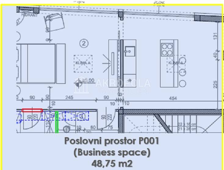 Poslovni prostor u prizemlju 48,75, pristup sa ulice.