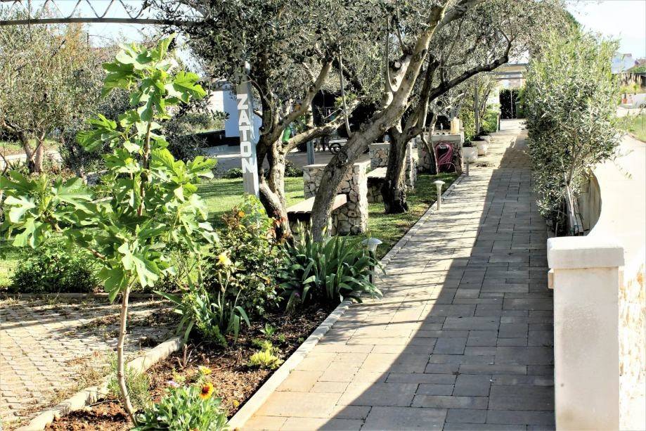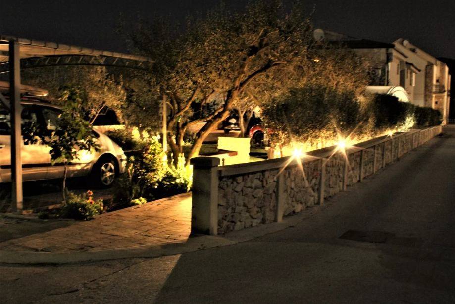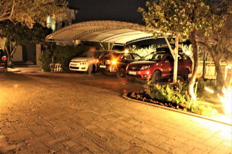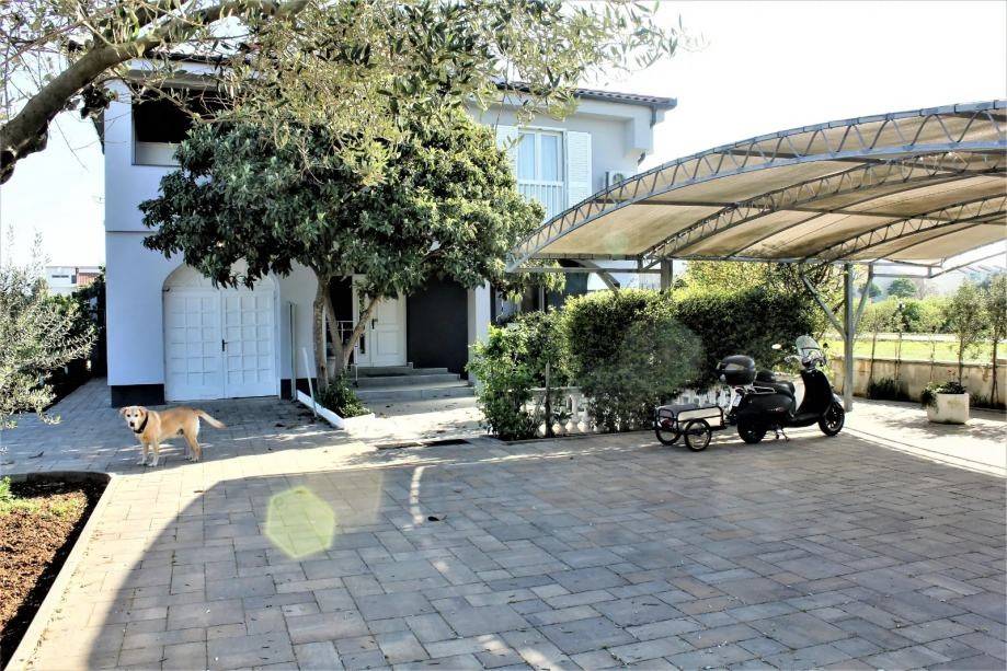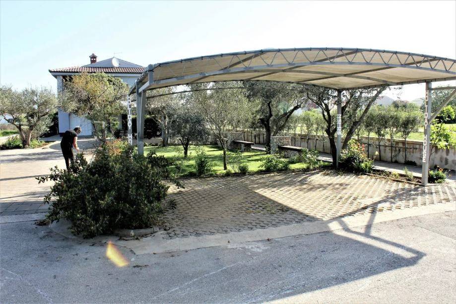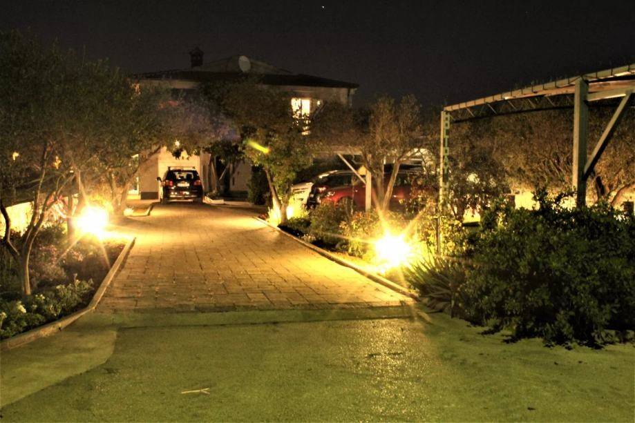 The environment is full of flowers and olive trees and lawns where you can easily make a pool. driveways, sidewalks and covered parking lots are lined with decorative panels. The parking lot itself has space for 5 cars with galvanized construction and a 200-gram awning, the entire playground is lit and a timer is set for automatic ignition and lights off. At the end of the field behind the house is a garden house. the whole terrain is enclosed in the Stone Wall, and the east side of the terrain is also fenced with Cypressino olive hedge (which is formed and cut like any fence plant, plus plus gives a good yield per year). the back of the terrain is surrounded by a concrete wall, and a laurel hedge has been developed which creates a very pleasant environment and creates privacy within the land itself.