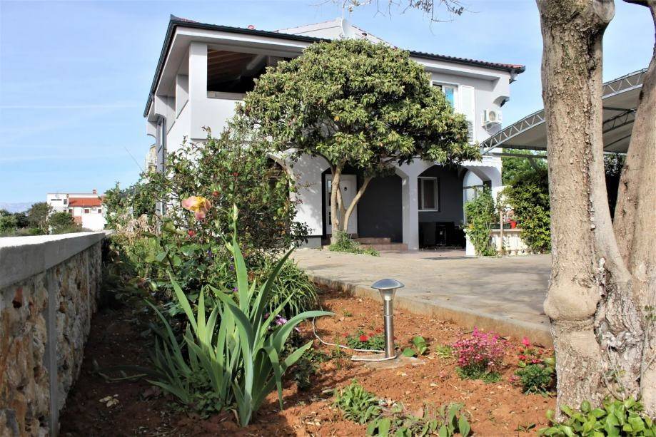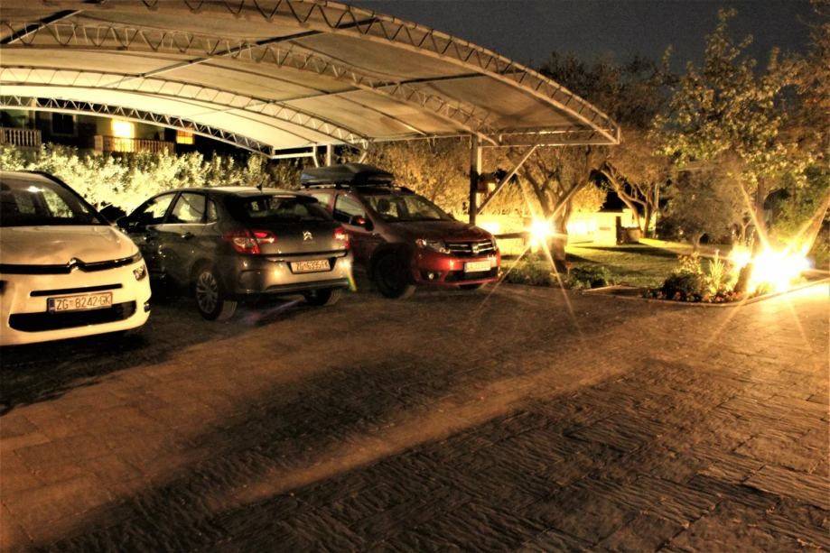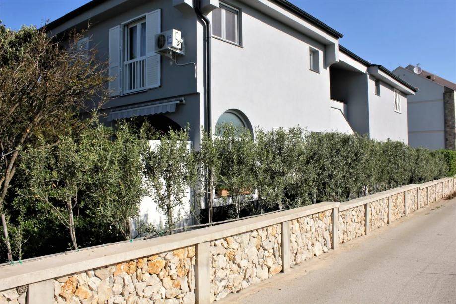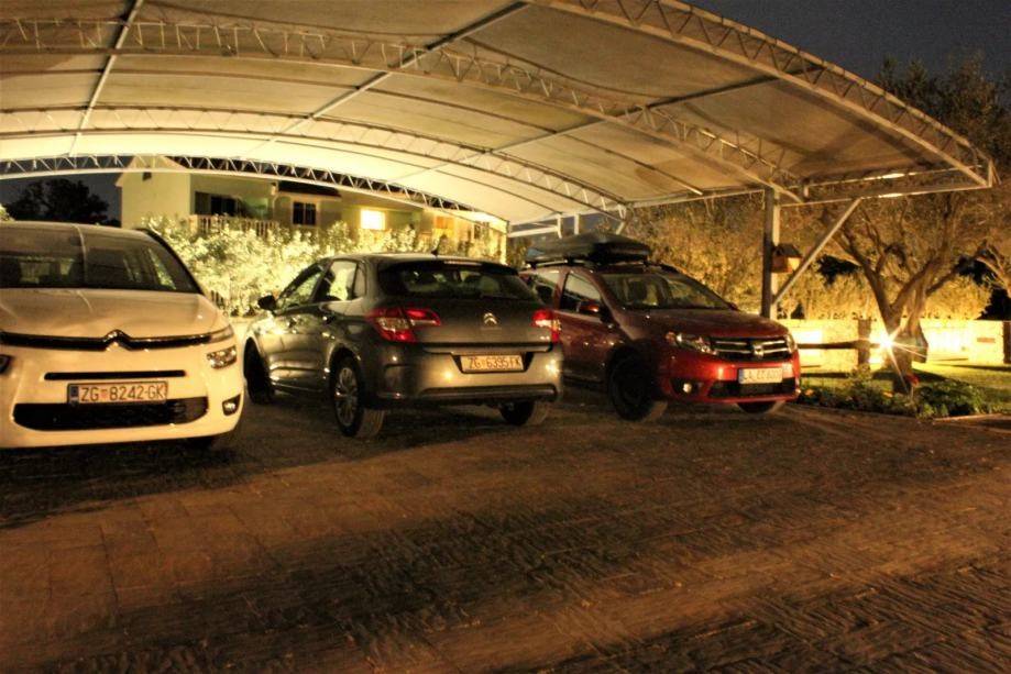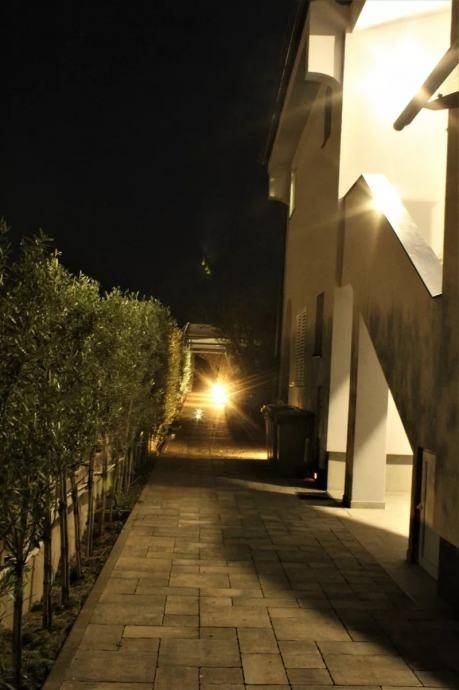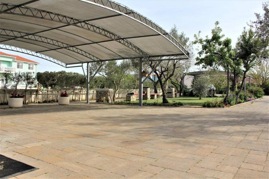 The environment is full of flowers and olive trees and lawns where you can easily make a pool. driveways, sidewalks and covered parking lots are lined with decorative panels. The parking lot itself has space for 5 cars with galvanized construction and a 200-gram awning, the entire playground is lit and a timer is set for automatic ignition and lights off. At the end of the field behind the house is a garden house. the whole terrain is enclosed in the Stone Wall, and the east side of the terrain is also fenced with Cypressino olive hedge (which is formed and cut like any fence plant, plus plus gives a good yield per year). the back of the terrain is surrounded by a concrete wall, and a laurel hedge has been developed which creates a very pleasant environment and creates privacy within the land itself.