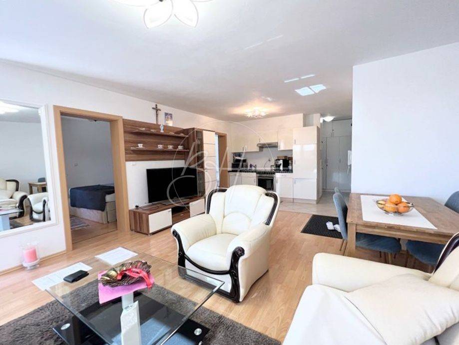 The apartment is located on the ground floor of a residential building and comes with its own 50 m² yard, two uncovered parking spaces and a separate entrance that provides additional privacy and peace.