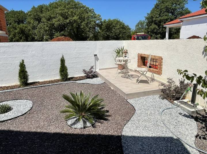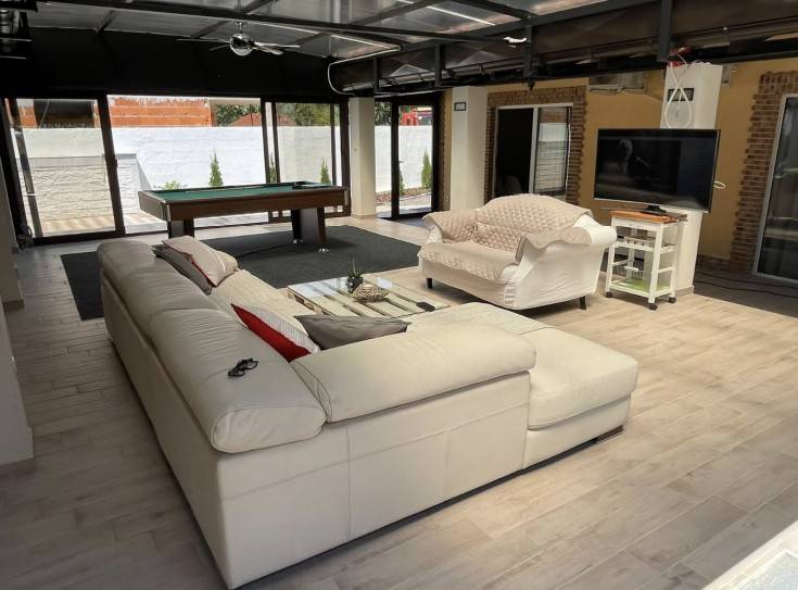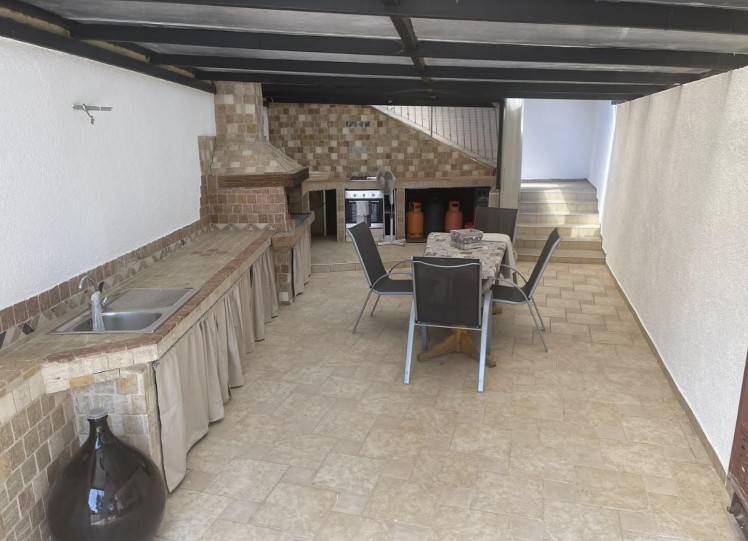 Apartment complex, Pomer, Istria, total living area of 500m2 located on a plot of 800m2. The facility was built in 2000 and consists of: ● two unique residential units of 130m2 each with 2 apartments of 65m2, next to each other (total 4 apartments - 260m2) ○ Each unit has a large terrace along the entire length of the house ○ each apartment consists of a kitchen and living room, bathroom, bedroom and attic. ○ All apartments are furnished and air conditioned ● 1 apartment on the ground floor of 150m2 ○ consists of a large living room with fireplace and table for 12 people, bathroom, kitchen and 3 bedrooms under construction ● Outdoor kitchen with BBQ ● 4 outdoor terraces ● 1 large covered terrace between two buildings of 100m2 ● Parking space is provided for 5 cars (3 up and 2 down) Pictures of the apartment are missing. Video surveillance covers the entire unit. It is 300 m as the crow flies from the sea. Ideal for family life as well as for tourism. The facility is sold in a package and fully furnished. For more information geofly.immobilien@gmail.com, 0916205903 For citizens of the Republic of Croatia who work abroad, we offer the possibility of lending through a reputable financial house.