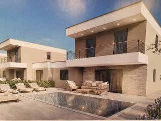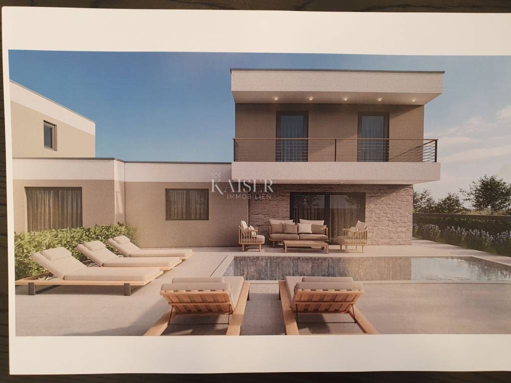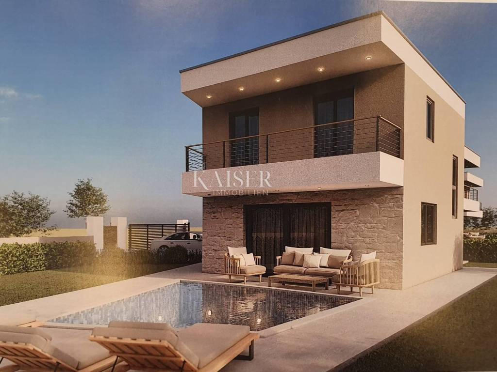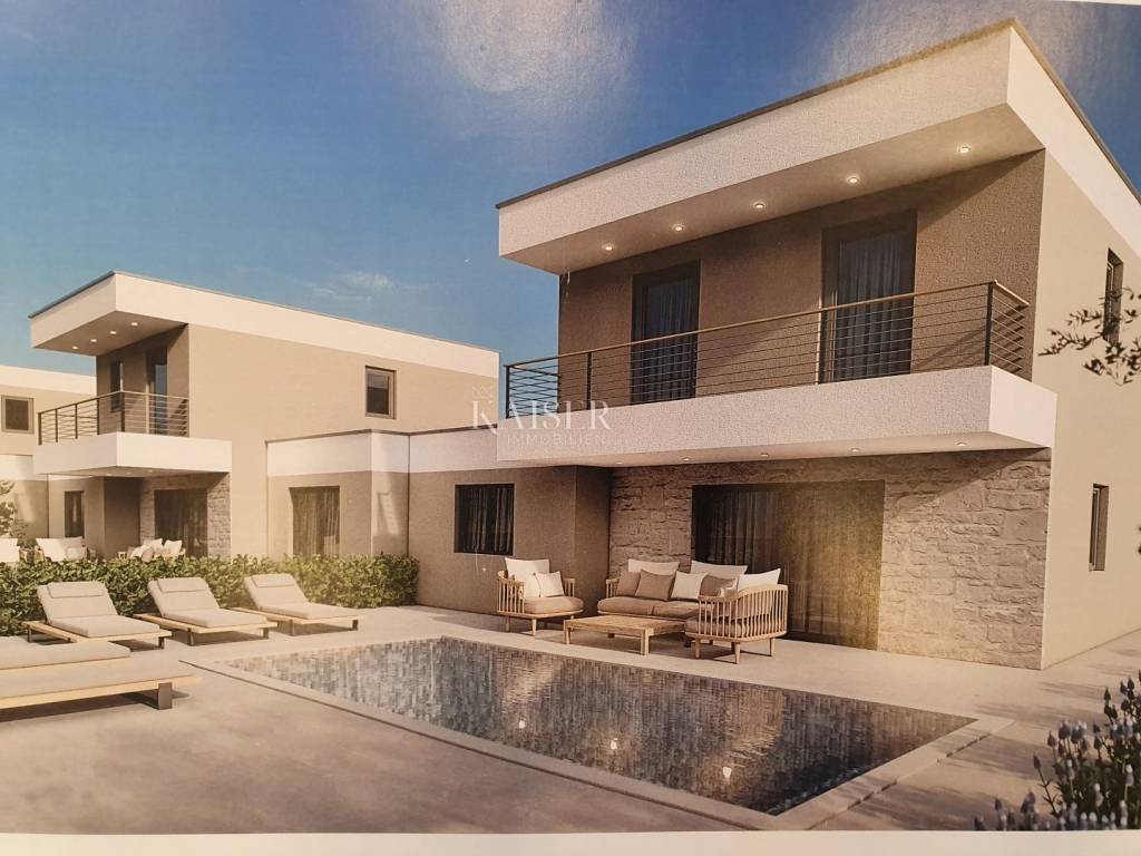 Kaiser Immobilien presents a brand new, modern house with a swimming pool, not far from the city of Poreč. The house is located only 4 km from the center of Poreč, and only 5 km from the sea. It is located in a very attractive location, both for the local population and for tourists. The basic and most necessary facilities for life are located near the settlement of the house, given the proximity of the city and other smaller settlements. Construction has already started on this house, and it is in the rowbau phase, and the planned completion of the house is at the end of the year at the latest. The house is located in a row of three identical units. Each house has its own swimming pool and its own private yard and parking for two cars. The building style of the house is a combination of modern and rustic style, with the addition of stone on the facade. The house is built with high-quality materials and excellent insulation, so attention is paid to every detail so that the future buyer is as satisfied as possible. The house consists of two floors. On the ground floor of the house there will be one bedroom, bathroom, kitchen and living room, dining room, pantry and engine room. Access to the pool is possible through the balcony door of the living room. The space on the ground floor is designed as an open space variant with lots of light and sunlight. On the first floor of the house there are two more bedrooms, one bathroom and a beautiful terrace with a view of the village and nature. The house will be heated by underfloor heating, but each room and living room also has an air conditioner. The yard is about 400 m2 in size, the pool is 24 m2 in size. The approach to the house is paved. By the end of the year, the city sewerage will be connected. Distance of the property to the city: Poreč - Pula Airport, 45 km Poreč - Ljubljana, 162 km Poreč - Vienna, 544 km Poreč - Prague, 868 km Poreč - Munich, 565 km If you want this modern and charming house to become your new home. , contact the agent at phone number 00385 923782803, or at the email address: ivana@kaiser-immobilien.hr. Agency commission is 3% + VAT.