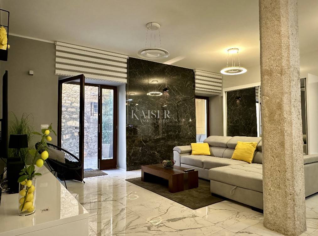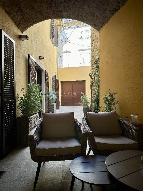 Kaiser Immobilien offers for sale a luxuriously renovated house in the very center of Poreč. At a distance of only 50 m from the sea with the sounds of summer tourist events, this unique building with elements of modern architecture is hidden. The house was completely renovated in 2017, with the addition of modern elements to a historic luxury building. It is divided into a total of three floors, each of which has a separate independent apartment with a separate entrance. Due to the excellent location, all important facilities are in the immediate vicinity and the sea is only 50 m from the property. The size of the house is 310 square meters, while the yard is 32 square meters. The apartment on the ground floor has a size of 95.3 m2 and consists of a hallway, a bedroom with its own bathroom and an exit to the yard. Comfortable living room, with kitchen and dining room and exit to the idyllic terrace and landscaped yard, bedroom, large bathroom with bathtub and shower, laundry room. During the adaptation, care was taken to preserve original details such as stone pillars and old bricks, which gives this house a special historical charm. Additional features of the apartment: Underfloor heating throughout the apartment Mosquito nets on the windows Air conditioners in all rooms Video intercom for additional security Water connection in the yard for the summer kitchen or jacuzzi Solar tube for natural lighting. The 1st floor, measuring 113.51 m2, consists of an entrance hall, a large living room with a dining room and a slightly separate kitchen, three bedrooms and two bathrooms. The kitchen and bathrooms have underfloor heating, and air conditioners are installed in all rooms. Mosquito nets on the windows Air conditioners in all rooms Video intercom for additional security Attic area of 69.83m2 consists of living room, kitchen and dining room, bathroom and bedroom. All rooms are also fully air-conditioned. This apartment offers practicality and comfort with lots of built-in wardrobes and drawers, the space is organized and adapted to everyday life. There is also floor heating in the bathroom. Each apartment has its own electricity meter. The house was completely and qualitatively renovated in 2017. Distance of the property to the city: Poreč - Pula Airport, 45 km Poreč - Ljubljana, 162 km Poreč - Vienna, 544 km Poreč - Prague, 868 km Poreč - Munich, 565 km If you want this beautiful house to become your new home, contact us with confidence on the phone number 00385 923782803, or on the email address: ivana@kaiser-immobilien.hr. Agency commission is 3% + VAT.