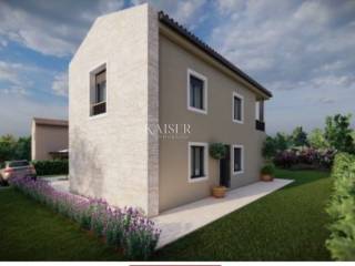 Kaiser Immobilien offers for sale a house under construction, in a small autochthonous Istrian village, only 18 km from the city of Poreč and the sea. The house is located in a quiet area, on the edge of the village, surrounded by several other modern properties. Peace, relaxation and complete enjoyment of nature are guaranteed here. The house is now under construction, it will have a ground floor and a first floor and a 31.5 m2 swimming pool in the yard. The size of the house is 130 m2, and it is located on a plot of land of 651 m2. From the top floor there is a wonderful view of the sea. The house has three bedrooms, three bathrooms, a kitchen, a living room and a dining room. The underfloor heating is electric, and each room also contains an air conditioner for additional heating and cooling of the rooms. It is planned to install solar panels on the roof of the house. The house has two parking spaces. An asphalt road is planned. At this stage, it is possible to buy a house for the amount of 280,000.00 Euros, and if the buyer wants a turnkey house, with finished floors and bathrooms, in that case the price of the finished house is 520,000.00 Euros. An additional advantage of this property is the possibility of buying agricultural land right next to the property, size 1090 m2. As an additional yard. Distance of the property to the city: Poreč - Pula Airport, 45 km Poreč - Ljubljana, 162 km Poreč - Vienna, 544 km Poreč - Prague, 868 km Poreč - Munich, 565 km If you want this new, modern house to become your new home. , contact the agent at phone number 00385 923782803, or at the email address: ivana@kaiser-immobilien.hr. Agency commission is 3% + VAT.