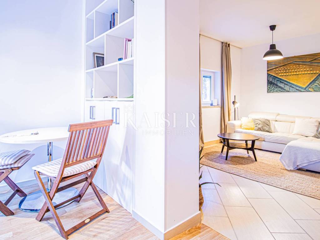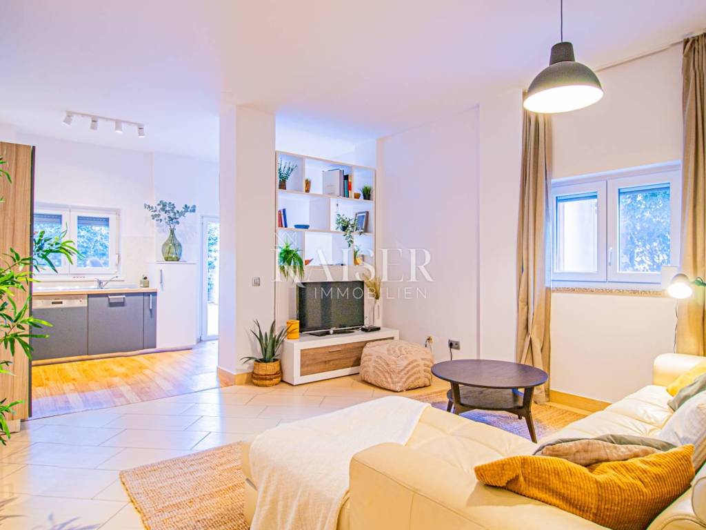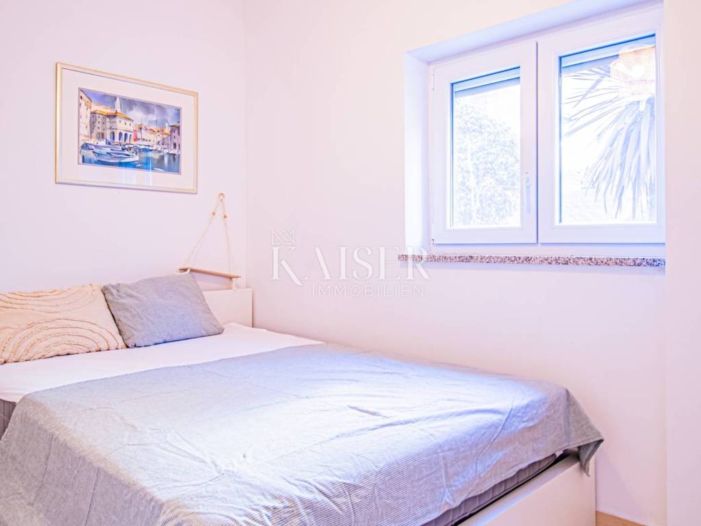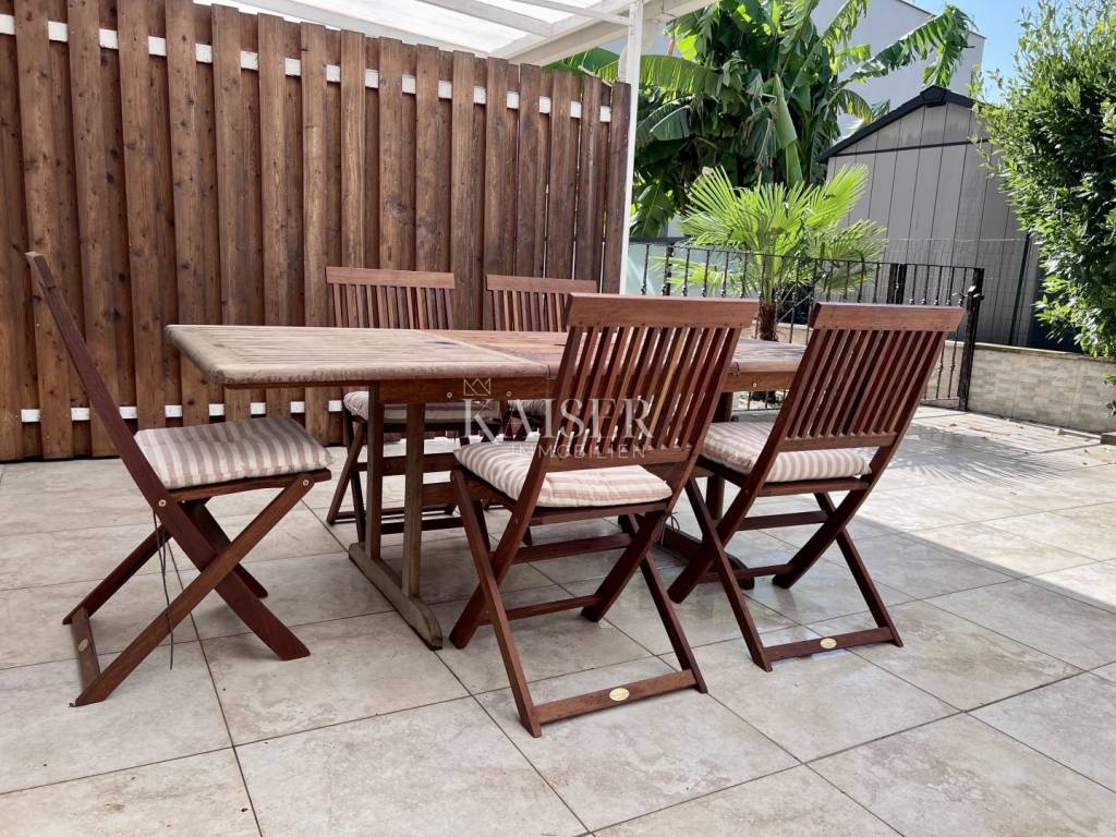 KAISER IMMOBILIEN – UNIQUE OPPORTUNITY! Kaiser Immobilien offers for sale a fully furnished apartment on the ground floor of a modern building in the marina itself, just 150 meters from the sea! This attractive property of 61.17 m² offers the perfect combination of comfort, functionality and a prime location. The apartment consists of: ✅ Two spacious bedrooms ✅ One modern bathroom ✅ Open concept kitchen, dining and living room ✅ Outdoor covered terrace with sink ✅ Outdoor storage and additional storage in the basement ✅ One fenced and protected parking space Additional amenities: