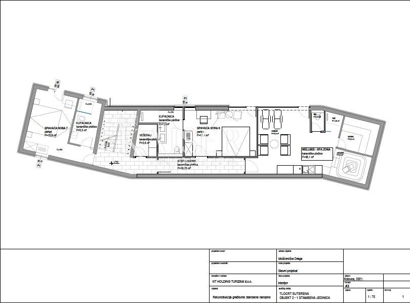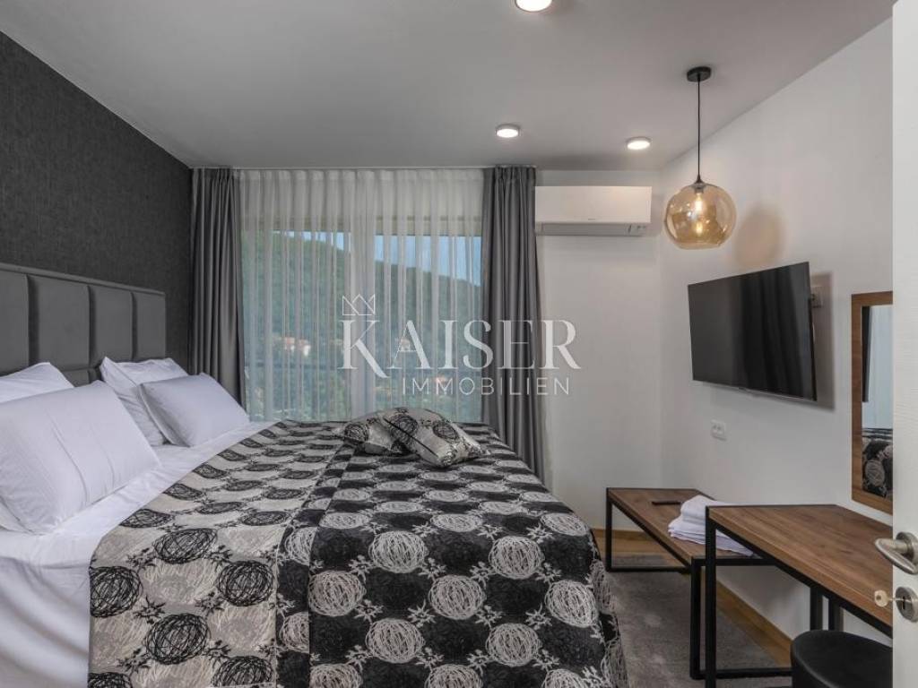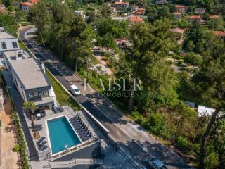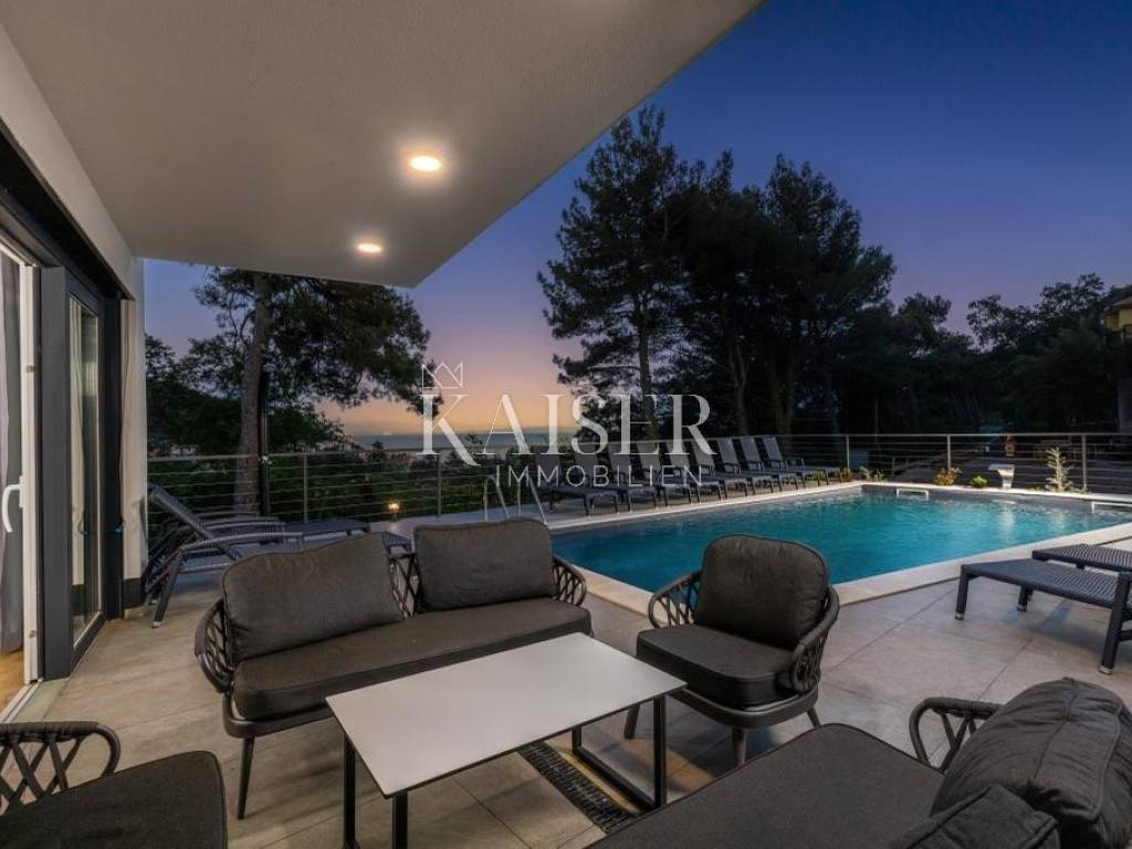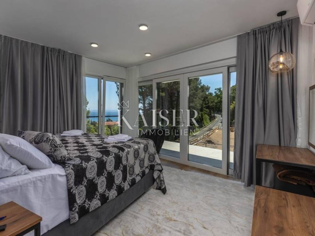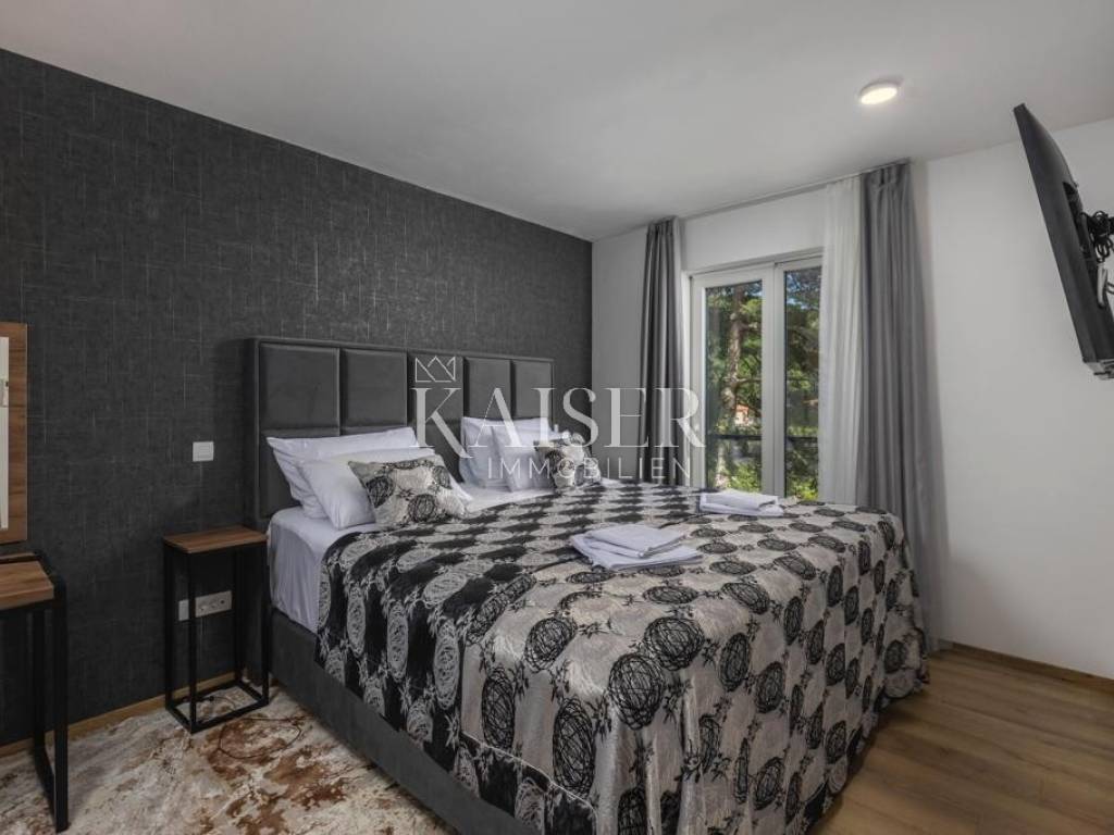 Kaiser Immobilien presents a new detached villa with a swimming pool, located in the immediate vicinity of the center of Mošćenička Draga and only 500 meters from the beach. The villa offers a total living area of 330 m2 on three floors. In the basement there is a wellness area with a sauna, a massage pool, a shower, a toilet and a corner for relaxation, a laundry room and two bedrooms, each with its own bathroom. Internal stairs lead to the ground floor, where there is a large living room, a dining area and an open kitchen, one bedroom with a bathroom and a guest toilet. The living room opens onto a large terrace with a 44 m2 swimming pool and sun deck. The main entrance to the villa is located on the ground floor level. Upstairs there are four bedrooms, each with its own bathroom and toilet, and a loggia of 9 m2. The villa is sold fully furnished and equipped. Heating and cooling is provided by a heat pump. Three parking spaces are also available. The seller of the villa is in the VAT system, and when purchasing, 25% VAT is charged on the published price. The total price of the villa with VAT is therefore €2,437,500.