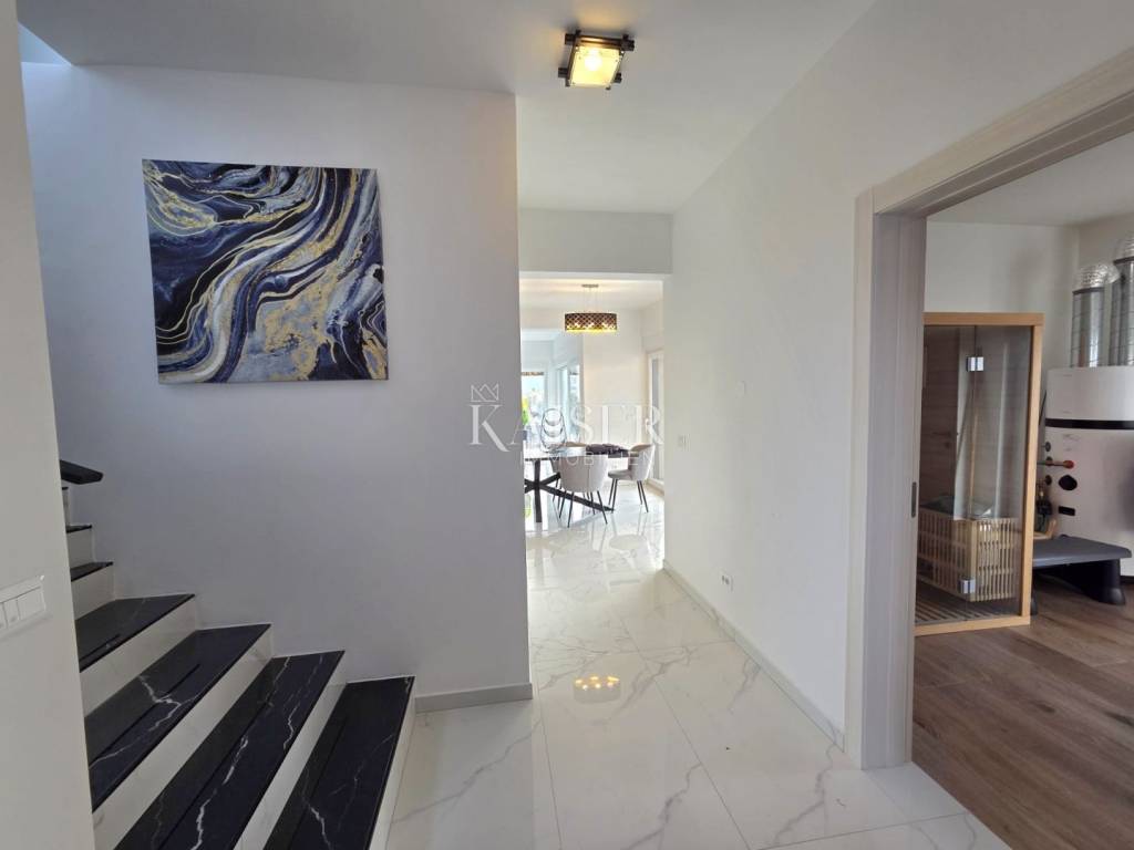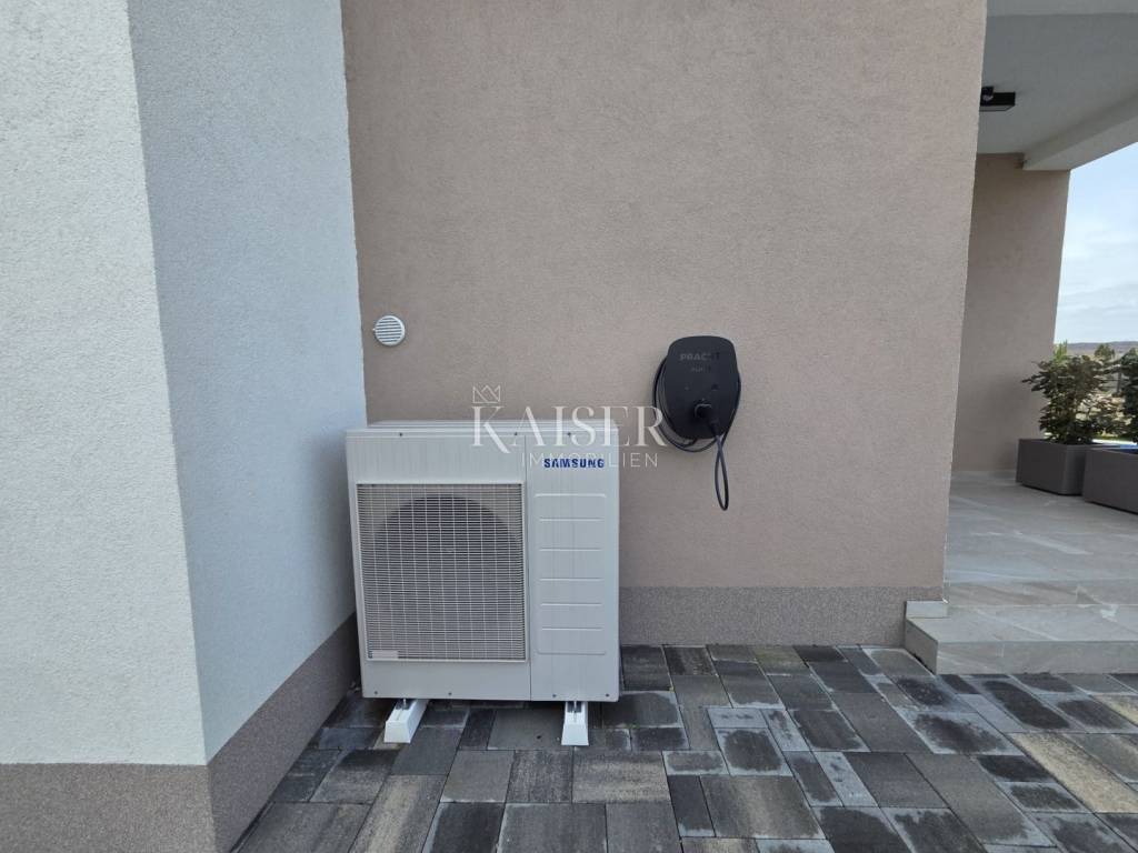 Top-quality materials were used in the construction, a heating and cooling system powered by a heat pump and Samsung inverter devices was installed, while the bathrooms have underfloor heating. The combination of high-quality joinery and a facade system with 12 cm thick insulation results in exceptional energy efficiency, and the property also has its own solar power plant. A charging station for electric vehicles, electric roller shutters, and video surveillance and alarm system have also been installed.