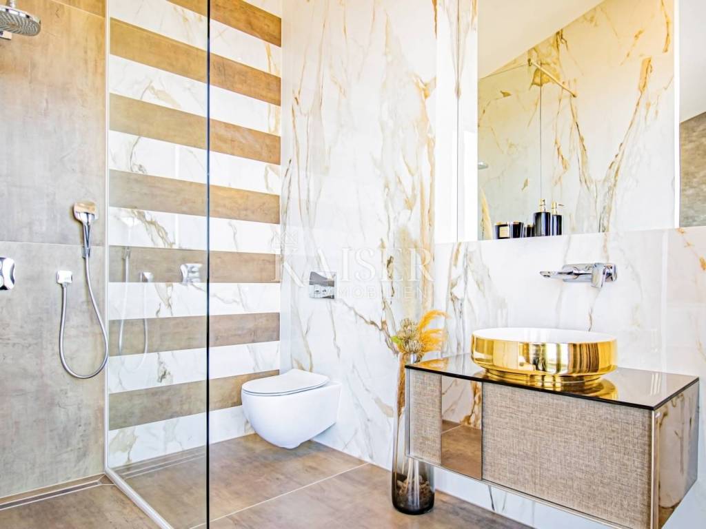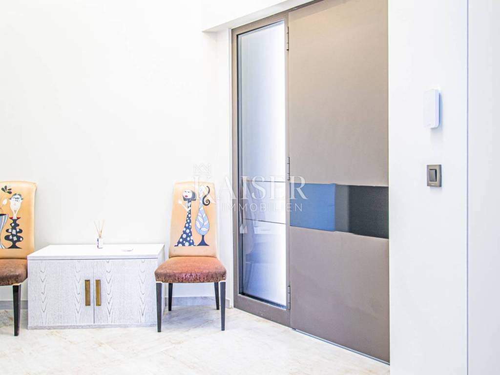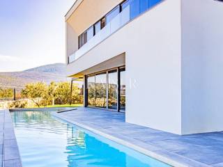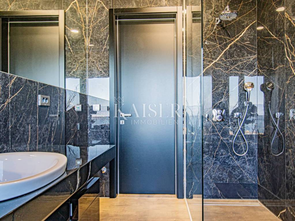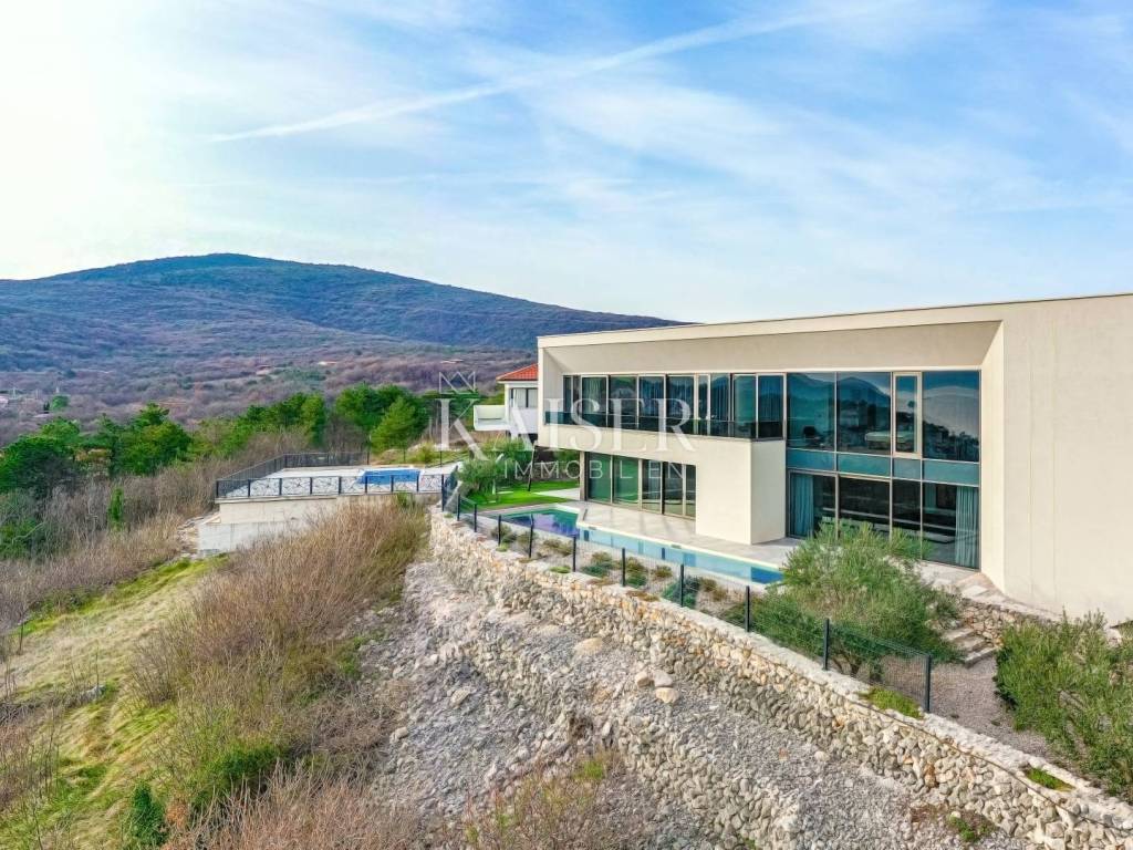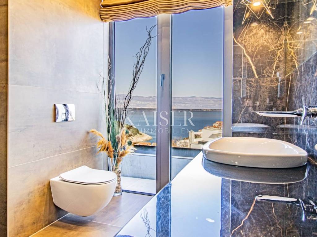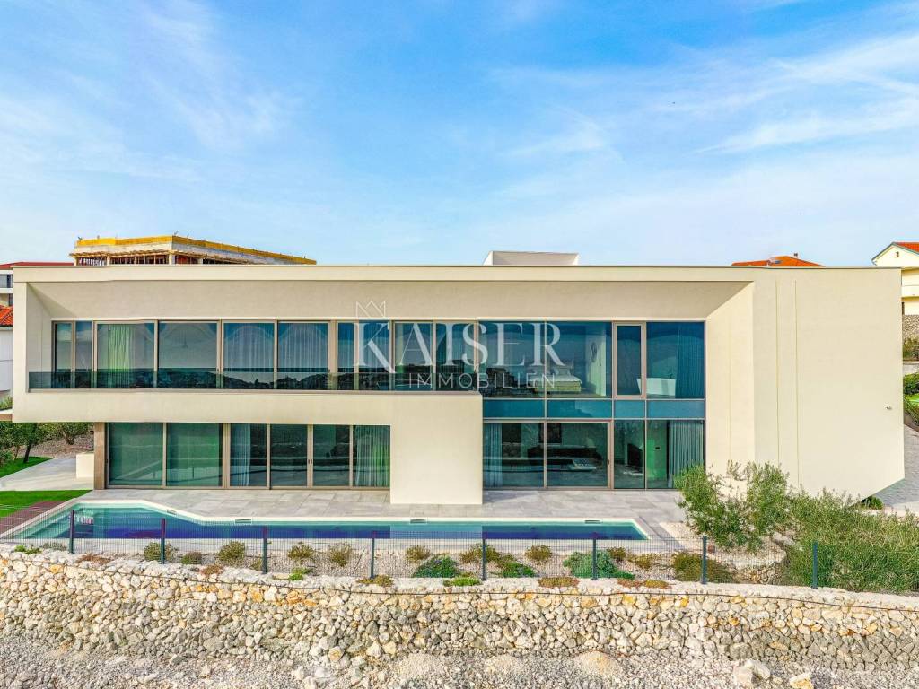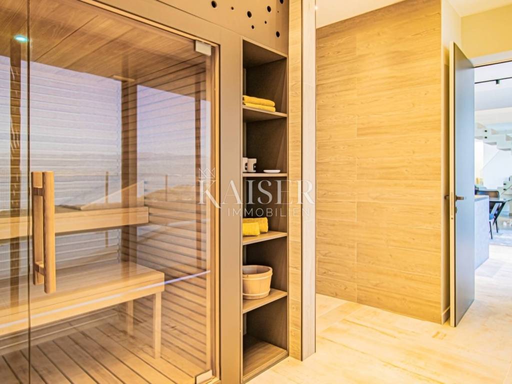 Immerse yourself in luxury and perfection of execution - Kaiser immobilien mediates in the sale of an exclusive villa in Vrbnik, the island of Krk. Vrbnik is undoubtedly one of the most famous Croatian towns, which, like other old castles on the island, is located high up, almost 50 meters high, and in a truly special place on a cliff that literally plunges into the sea. It was first mentioned in 1100. The inhabitants were mostly engaged in agriculture, less in shipping and fishing. Today, the most famous product of the Vrbnik field and Vrbnik in general is the golden yellow wine - Žlahtina; it has become famous in wider Croatia. According to the stories of older locals, before the wine gained fame, cereals were grown in the field to feed families that had more members than today. In such conditions, the vines were grown along the edges of the field because there was no market and the wine was produced only for their own needs. Vrbnik is still, mainly, a picnic spot, which is in some ways an advantage. With its rich history, Vrbnik is called the cradle of literacy among Croats and is certainly one of the oldest places on the island of Krk. Narrow streets prevail in Vrbnik, so it is not surprising that the narrowest street in the world is located right here. With its location and orientation, the villa seems to float above Vrbnik and its panoramic view of the sea and the picturesque thousand-year-old town is breathtaking. Located on a plot of 1,000m2, the total living area of 268m2 is spread over two floors. On the ground floor, next to the entrance area and hallway, there is an open-concept living area with a living room, kitchen and dining room. The living area is completely glazed with panoramic walls and top-quality aluminum joinery. On the ground floor there is also a separate wellness area with a sauna and "starry sky" ceiling lighting, as well as a guest toilet with a laundry room and storage room. The living area leads out onto a covered terrace next to which there is a heated 43m2 swimming pool with a shower and a sunbathing area. Upstairs there are three bedrooms with their own "en suite" bathrooms, all of which have access to a covered terrace with a glass fence. The entire building offers a panoramic view of the sea and the thousand-year-old town located on a cliff above the sea. This indescribable and almost endless view of the sea and Vrbnik, and the abundant presence of sunlight in the building, are greatly contributed to by the panoramic glass walls installed along the entire building, in the full height of the rooms. The covers of lifestyle magazines are guaranteed. Top-quality materials and equipment were used in the furnishing and construction. The building is built with Porotherm blocks, the STO facade system with 10cm of insulation was used. The flat roof has 20cm of thermal insulation, a TPO membrane in combination with the FIRESTONE system protects against moisture, and the roof windows are VELUX. Top-quality Italian ceramics from the manufacturer FLAVIKER, massive aluminum joinery from the manufacturer HEROAL in combination with LAMISTAL glass, and an entrance door with a triple lock and fingerprint unlocking from the manufacturer INOTHERM. VIESMANN heating, air conditioning and ventilation system. There is also a summer kitchen in the garden, and there is enough space in the driveway to park several vehicles. ID CODE 105-212 The agency commission for the buyer is 3% + VAT and is paid in the case of purchasing a property, upon conclusion of the first legal act.