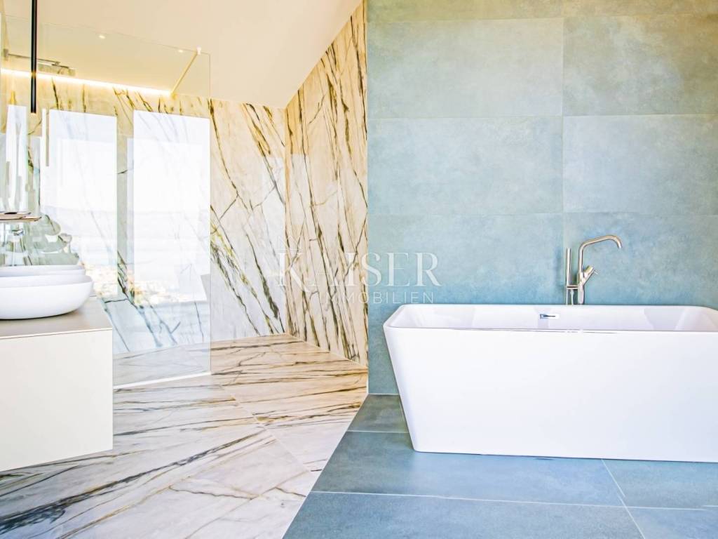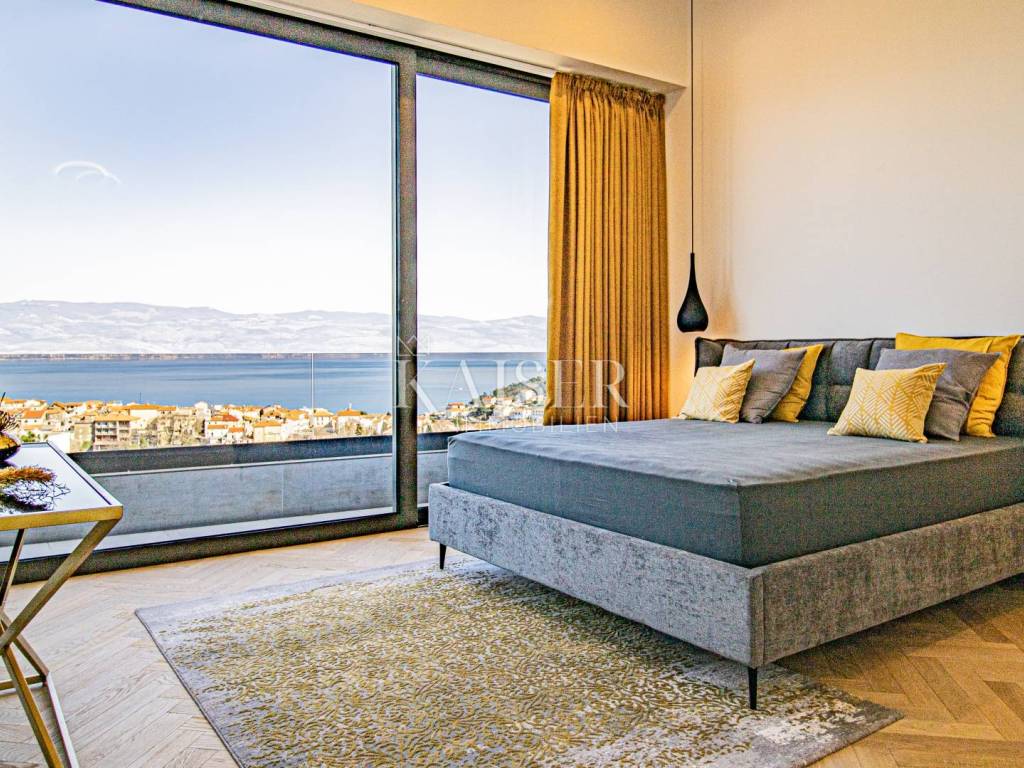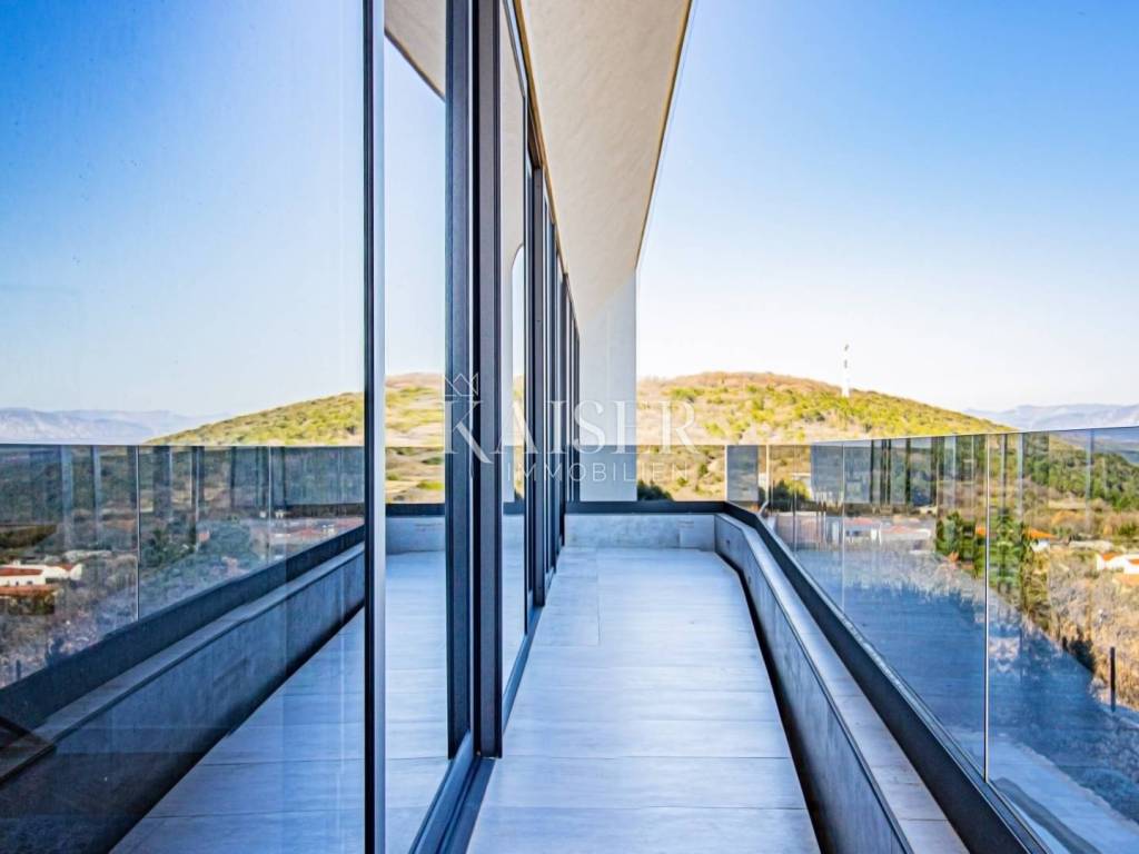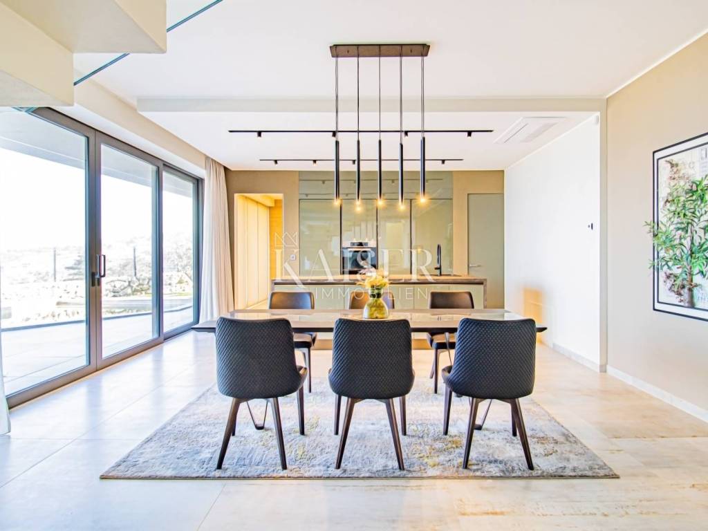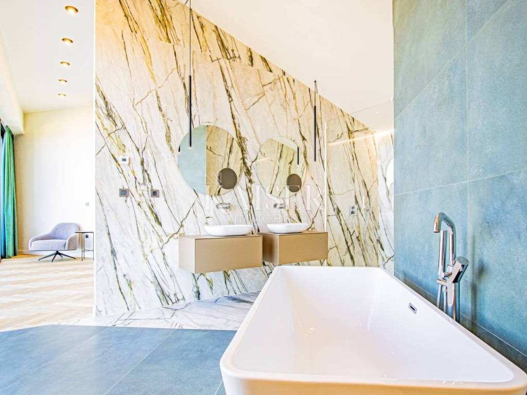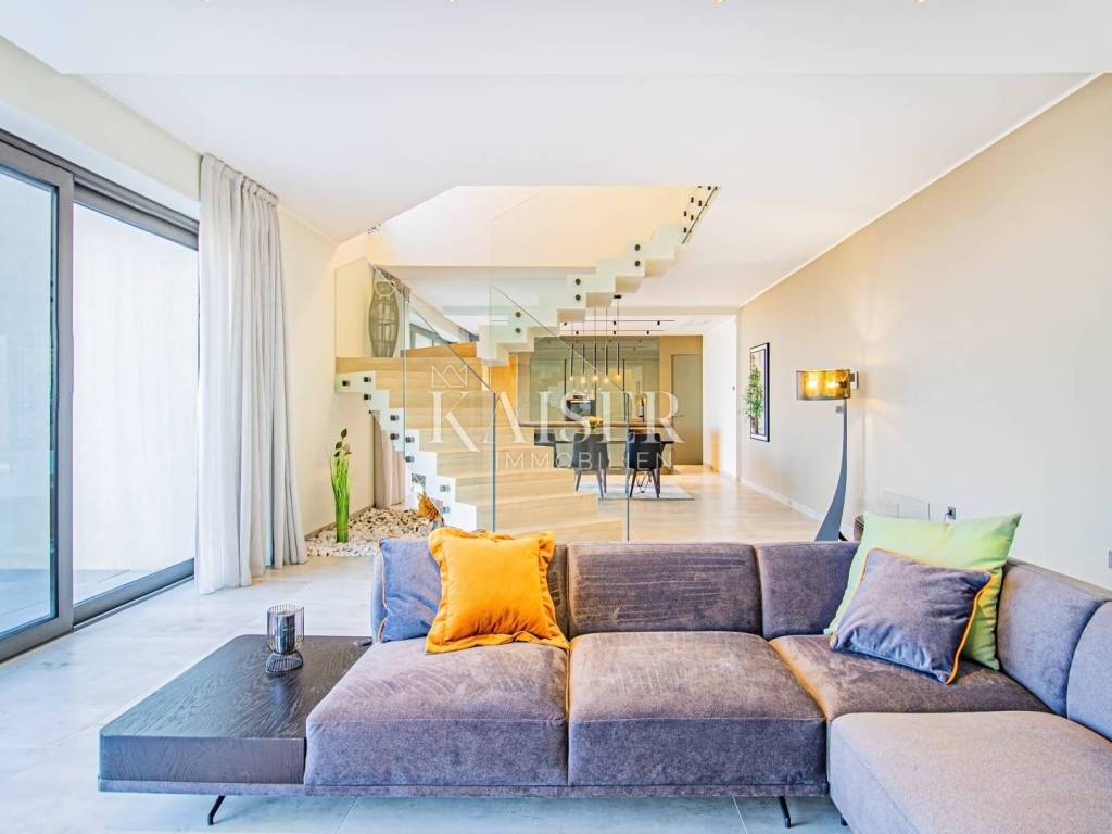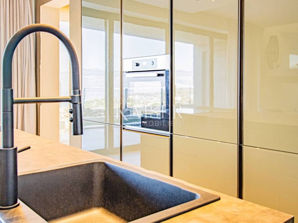 Immerse yourself in luxury and perfection of execution - Kaiser immobilien mediates in the sale of an exclusive villa in Vrbnik, the island of Krk. Vrbnik is undoubtedly one of the most famous Croatian towns, which, like other old castles on the island, is located high up, almost 50 meters high, and in a truly special place on a cliff that literally plunges into the sea. It was first mentioned in 1100. The inhabitants were mostly engaged in agriculture, less in shipping and fishing. Today, the most famous product of the Vrbnik field and Vrbnik in general is the golden yellow wine - Žlahtina; it has become famous in wider Croatia. According to the stories of older locals, before the wine gained fame, cereals were grown in the field to feed families that had more members than today. In such conditions, the vines were grown along the edges of the field because there was no market and the wine was produced only for their own needs. Vrbnik is still, mainly, a picnic spot, which is in some ways an advantage. With its rich history, Vrbnik is called the cradle of literacy among Croats and is certainly one of the oldest places on the island of Krk. Narrow streets prevail in Vrbnik, so it is not surprising that the narrowest street in the world is located right here. With its location and orientation, the villa seems to float above Vrbnik and its panoramic view of the sea and the picturesque thousand-year-old town is breathtaking. Located on a plot of 1,000m2, the total living area of 268m2 is spread over two floors. On the ground floor, next to the entrance area and hallway, there is an open-concept living area with a living room, kitchen and dining room. The living area is completely glazed with panoramic walls and top-quality aluminum joinery. On the ground floor there is also a separate wellness area with a sauna and "starry sky" ceiling lighting, as well as a guest toilet with a laundry room and storage room. The living area leads out onto a covered terrace next to which there is a heated 43m2 swimming pool with a shower and a sunbathing area. Upstairs there are three bedrooms with their own "en suite" bathrooms, all of which have access to a covered terrace with a glass fence. The entire building offers a panoramic view of the sea and the thousand-year-old town located on a cliff above the sea. This indescribable and almost endless view of the sea and Vrbnik, and the abundant presence of sunlight in the building, are greatly contributed to by the panoramic glass walls installed along the entire building, in the full height of the rooms. The covers of lifestyle magazines are guaranteed. Top-quality materials and equipment were used in the furnishing and construction. The building is built with Porotherm blocks, the STO facade system with 10cm of insulation was used. The flat roof has 20cm of thermal insulation, a TPO membrane in combination with the FIRESTONE system protects against moisture, and the roof windows are VELUX. Top-quality Italian ceramics from the manufacturer FLAVIKER, massive aluminum joinery from the manufacturer HEROAL in combination with LAMISTAL glass, and an entrance door with a triple lock and fingerprint unlocking from the manufacturer INOTHERM. VIESMANN heating, air conditioning and ventilation system. There is also a summer kitchen in the garden, and there is enough space in the driveway to park several vehicles. ID CODE 105-212 The agency commission for the buyer is 3% + VAT and is paid in the case of purchasing a property, upon conclusion of the first legal act.