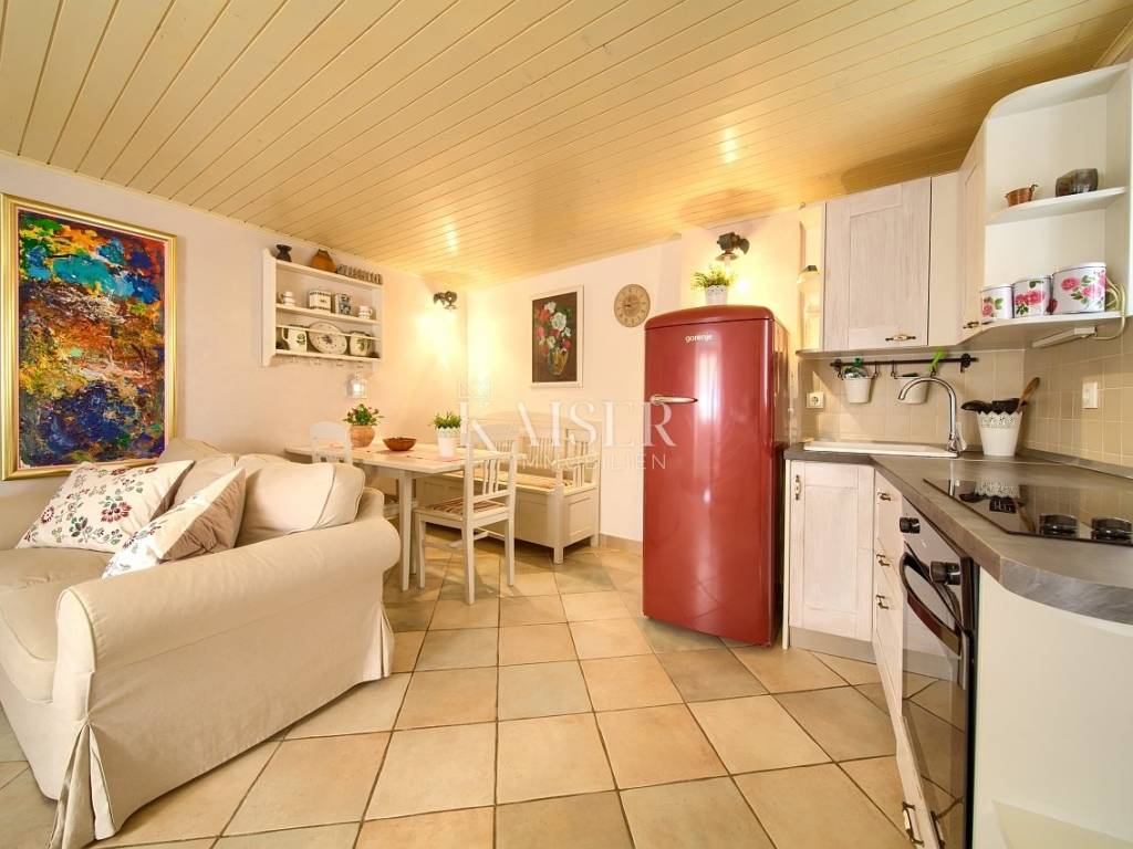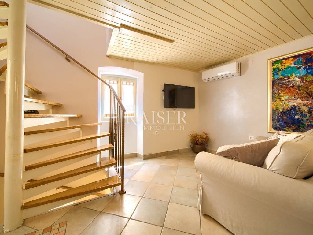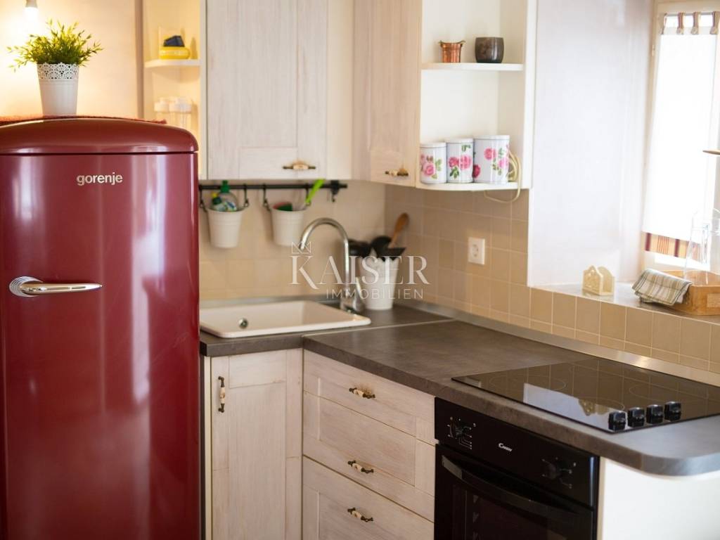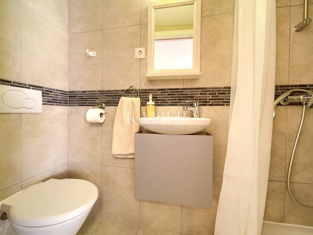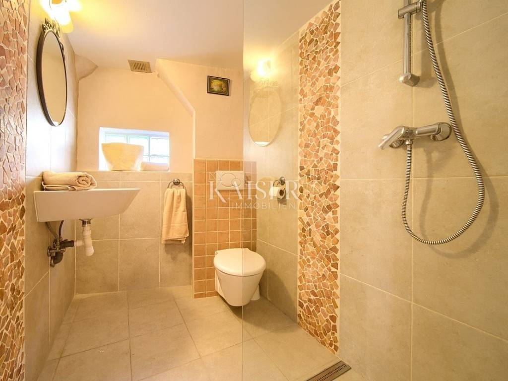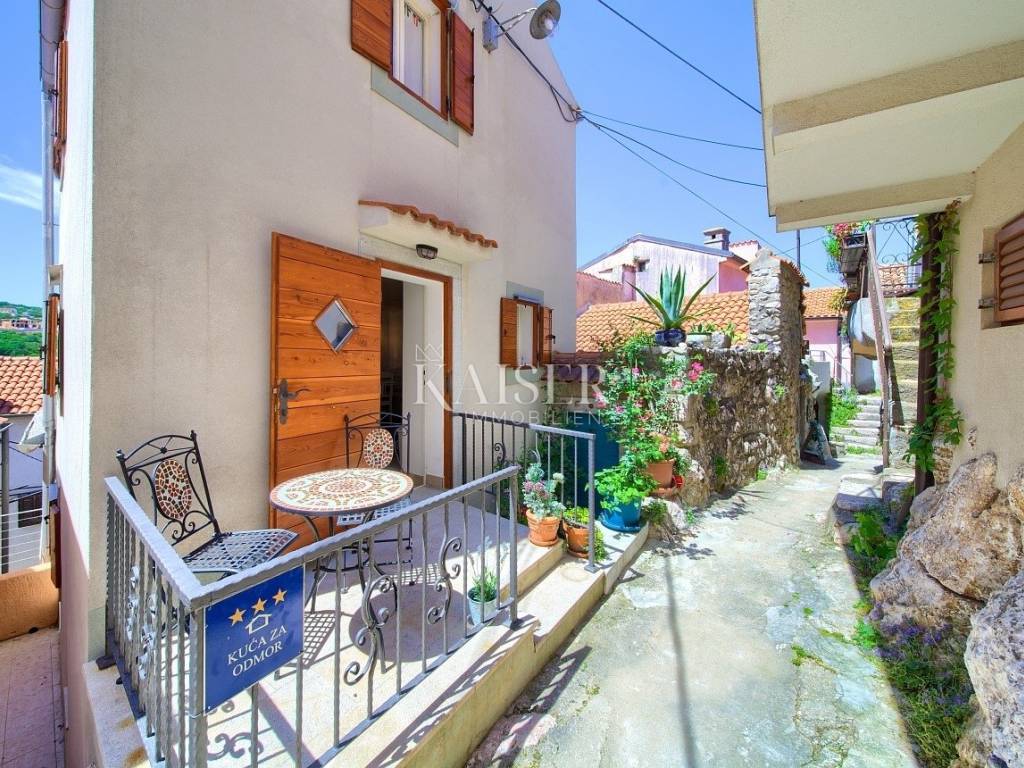 Vrbnik is one of the oldest towns on the island of Krk. It is located on the eastern side of the island of Krk on a steep cliff at an altitude of about 50 meters. Vrbnik is a typical coastal town with small houses clustered together in narrow stone-paved streets. The most important economic sector in Vrbnik is agriculture, specifically viticulture. Kaiser Immobilien presents this charming and functionally renovated 72 m² house located in the heart of historic Vrbnik, within its picturesque pedestrian zone. The house extends over three floors connected by an elegant internal spiral staircase. On the ground floor there is a cozy living room with a kitchen, while on the lower and upper floors there are two bedrooms, each with its own bathroom with a shower. It is equipped with modern amenities such as a TV-SAT system and two air conditioners that provide cooling and heating. Although it currently does not have an additional heating system due to summer use, the house has a functional chimney, which allows the installation of a stove according to the future owner's wishes. At the entrance there is a small terrace that provides an ideal space for morning relaxation, and an additional value is brought by an unbuilt tavern with numerous potentials for conversion. It is currently accessible via an external entrance, but there is a possibility of connecting it to the interior of the house. The house is fully furnished, lovingly renovated over the last ten years. The roof, electrical and plumbing installations were replaced in 2015 and are in good condition, while future owners would recommend renewing the wooden shutters. A special advantage of this property is its proximity to key amenities. You will find a church, souvenir shops, wine cellars and restaurants with traditional island cuisine and wines literally a few steps away. The distance from the beach is about 400 meters. Although the house is not accessible by car due to the pedestrian zone, homeowners are provided with public parking only 300 meters away. The perfect combination of authentic island charm, modern functionality and proximity to all important amenities makes this house a unique opportunity to enjoy the heart of Vrbnik. Proximity to amenities: Restaurant- 300 m Shop- 300 m Beach- 400 m Sights- 10 m Winery- 70 m Pharmacy- 500 m Bakery- 400 m Cafe- 300 m Krk- 13 km Punat- 10 km Malinska- 17 km Baška- 18 km Airport- 25 km Distance to major cities: Vrbnik- Ljubljana: 160 km Vrbnik- Vienna: 530 km Vrbnik- Budapest: 520 km Vrbnik- Prague: 860 km Vrbnik- Munich: 560 km Vrbnik- Zagreb: 180 km The agency's commission for the buyer is 3% + VAT and is paid in the case of purchasing a property, upon conclusion of the first legal act. ID-CODE: 127-052 If you would like to visit the property in person, please contact: Jennifer Hofmann E-mail: jennifer@kaiser-immobilien.hr Tel: +385-91-515-0887 http://kaiser-immobilien.hr/