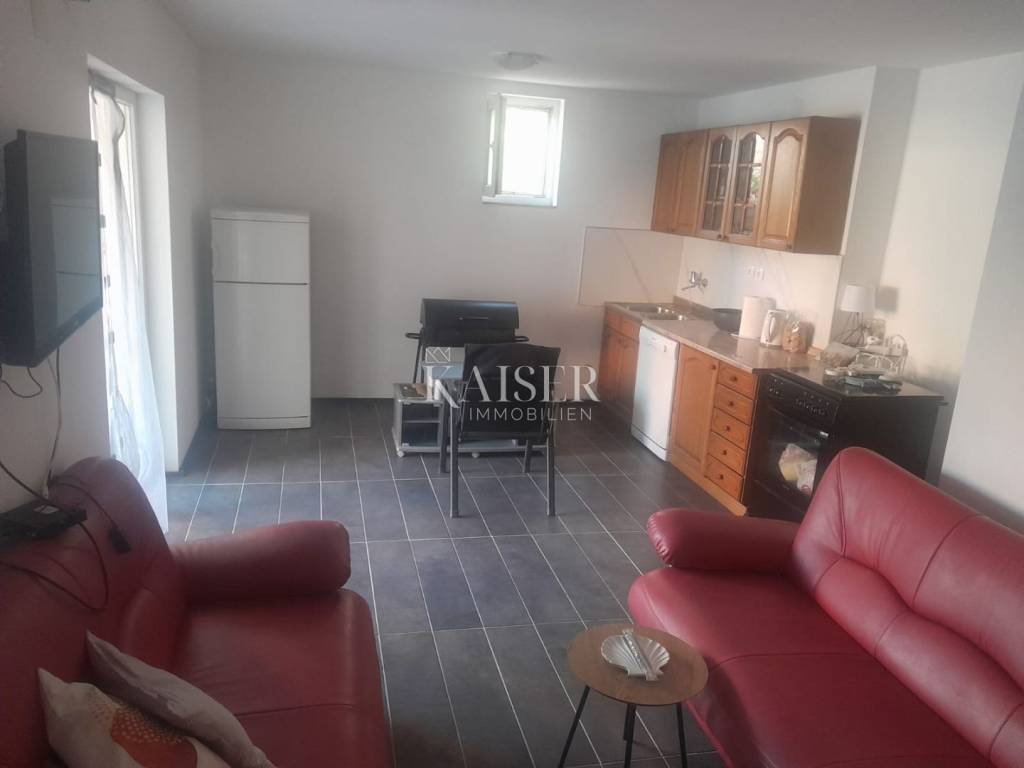 Kaiser Immobilien presents: House for sale on Vir - village of Bobovik, 350 m from the sea Modern and fully furnished house for sale in a quiet location in the village of Bobovik, on the island of Vir, only 350 meters from the sea and Žitna uvala beach. The house is located in a quiet street, from which there is a view and exit to the sea on both sides. Basic information: House area: 90 m² Yard: 90 m² Year of construction: 2023 Floors: ground floor + first floor + attic (gallery) Energy-efficient facade (insulation) Mosquito nets and blinds on all windows Water storage (well) and septic tank The house is built on a plot with three other separate houses, each with its own part of land and privacy. Room layout: Ground floor: Living room with kitchen and dining room One bedroom Storage room under the stairs Access to a spacious terrace First floor: Two bedrooms Bathroom Balcony Attic (gallery): Converted into additional space, height up to 1.70 m — ideal for a bedroom, children's room or office. Floor coverings: Ground floor - tiles First floor - laminate Location and distances: Sea and beach Žitna uvala: 350 m Center of Vir: 1.5 km Highway (A1 - Posedarje): about 30 km Zadar: about 25 km Zadar Airport (Zemunik): 35 km The island of Vir is one of the most sought-after tourist and residential areas in Zadar County. It is known for its beautiful beaches, clear sea and numerous amenities for a family and peaceful vacation. Vir is connected to the mainland by a bridge, which allows easy access and comfortable living throughout the year. The house is ideal for a family vacation, year-round residence or as an investment for tourist rental. The buyer's commission is 3% + VAT and is charged with the first legal act. For all additional information and to arrange a viewing, please contact us with confidence. Tel: 00385992510230 Email: marijana.papic@kaiser-immobilien.hr