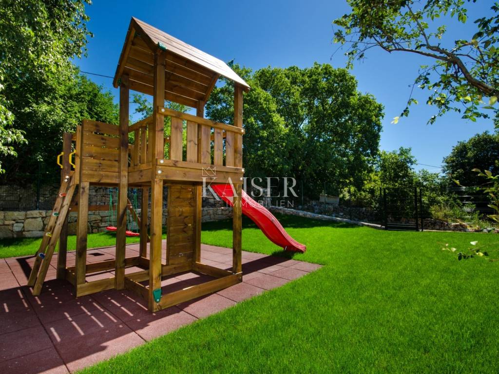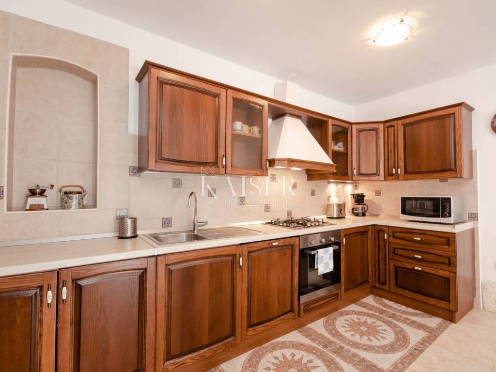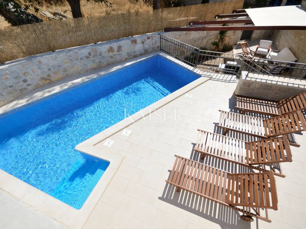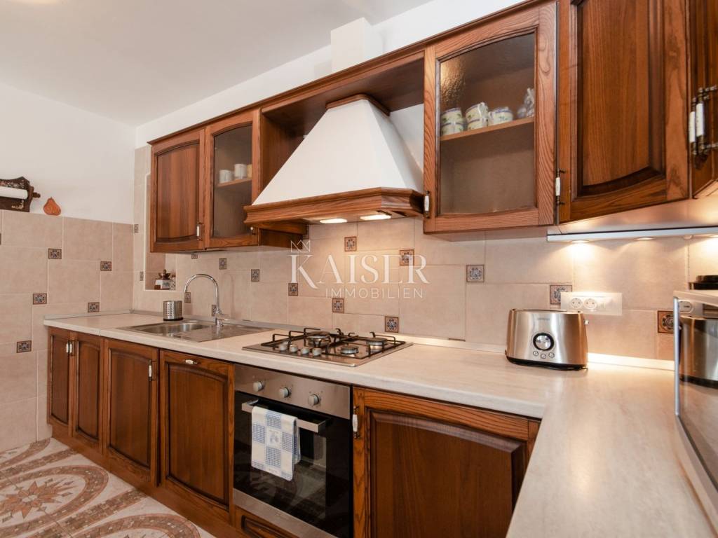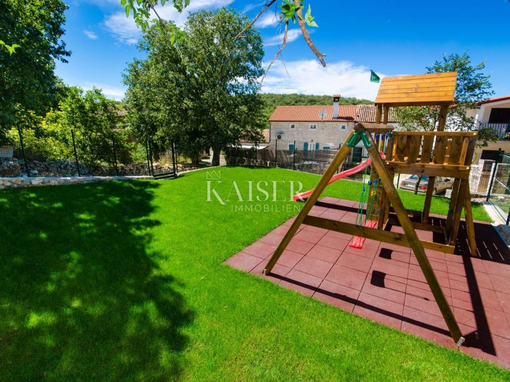 Rovinj, the pearl of Istria, is one of the most charming coastal towns on the Adriatic. Picturesque stone streets, the recognizable bell tower of the Church of St. Euphemia and the picturesque coast create a unique Mediterranean atmosphere. This historic town offers a rich cultural heritage, top-notch gastronomic experiences and crystal clear sea, making it a perfect destination for vacation and life. Kaiser Immobilien presents you with a charming, fully renovated stone house of 170 m², located in a very quiet location near Rovinj, surrounded by nature and a pleasant neighborhood. This elegant Istrian house, a combination of traditional charm and modern comfort, is ideal for a quiet family life or as an investment for tourist rental. The house is spread over three floors - ground floor and two upper floors. The entrance leads via a large covered terrace into a cozy living room of about 25 m², equipped with a TV and a large stone fireplace that gives the space a special atmosphere of warmth and authenticity. From the living room, a staircase leads to the upper floors, while to the right is a spacious kitchen with a dining area of approximately 25 m². The kitchen is fully equipped with all the necessary appliances – a Candy oven, a four-burner gas stove, a dishwasher, a hood and a refrigerator, and everything is decorated in a rustic style, in keeping with the character of the entire house. On the first floor there are two bedrooms, each with its own bathroom – one with a shower, the other with a bathtub. The rooms are approximately 15 m² in size, and the hallway leads to the back terrace overlooking the courtyard. On the same level there is a 24 m² swimming pool with a sunbathing area and an additional lower-level terrace with access to the road. On the second floor there are two more stylishly decorated bedrooms, also each with its own bathroom equipped with a shower and toilet. The house also has a storage room of 20 m², very practical for storing things. The complete renovation was carried out in 2013, during which a new roof with a structure was installed, reinforced concrete interfloor slabs were installed, new electricity, water and central heating installations were installed, new air conditioning, floor and wall coverings, joinery and furniture. The swimming pool uses a salt electrolysis system and has the possibility of heating. Hot water is provided by solar collectors and a 300-liter boiler with the possibility of additional heating by electricity. Heating and cooling are solved using a Daikin inverter multi-split system with five indoor and two outdoor units, and there is also preparation for central radiator heating. The living room is additionally decorated with a brick fireplace. The house is equipped with optical internet and an alarm system, and it also has a garden of 120 m², arranged as a children's playground, with direct access from outside the yard. This property represents an excellent investment because it is successfully rented out or the perfect home for those looking for peace, comfort and an authentic Istrian ambience, in the immediate vicinity of Rovinj and Rovinjsko Selo, with restaurants, cafes, shops and beautiful surrounding nature. What's nearby: Restaurant: 2.8 km Beach: 9 km Shop: 2.6 km Cafe: 2.6 km Pharmacy: 2.6 km Lim Canal - 3 km Dvigrad Castle: 6 km St. Euphemia: 8 km Rovinj Aquarium: 10 km Matošević Winery (cafe & winery): 7 km Morosini-Grimani Castle: 12 km Punta Corrente Park: 12 km Dušan Džamonja Sculpture Park: 17 km Train - Kanfanar: 7 km Rovinjsko Selo: 2 km Rovinj: 8 km Pula Airport: 34 km Distance from major cities: Rovinj- Ljubljana: 186 km Rovinj- Vienna: 567 km Rovinj- Budapest: 591 km Rovinj- Prague: 838 km Rovinj- Munich: 587 km Rovinj- Zagreb: 250 km The agency commission for the buyer is 3% + VAT and is paid in the case of purchasing a property, upon conclusion of the first legal act. Interested buyers can view the property only after signing a real estate brokerage contract. ID-CODE: 127-181 If you would like to visit the property in person, please contact: Jennifer Hofmann E-mail: jennifer@kaiser-immobilien.hr Tel: +385-91-515-0887