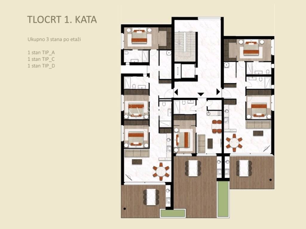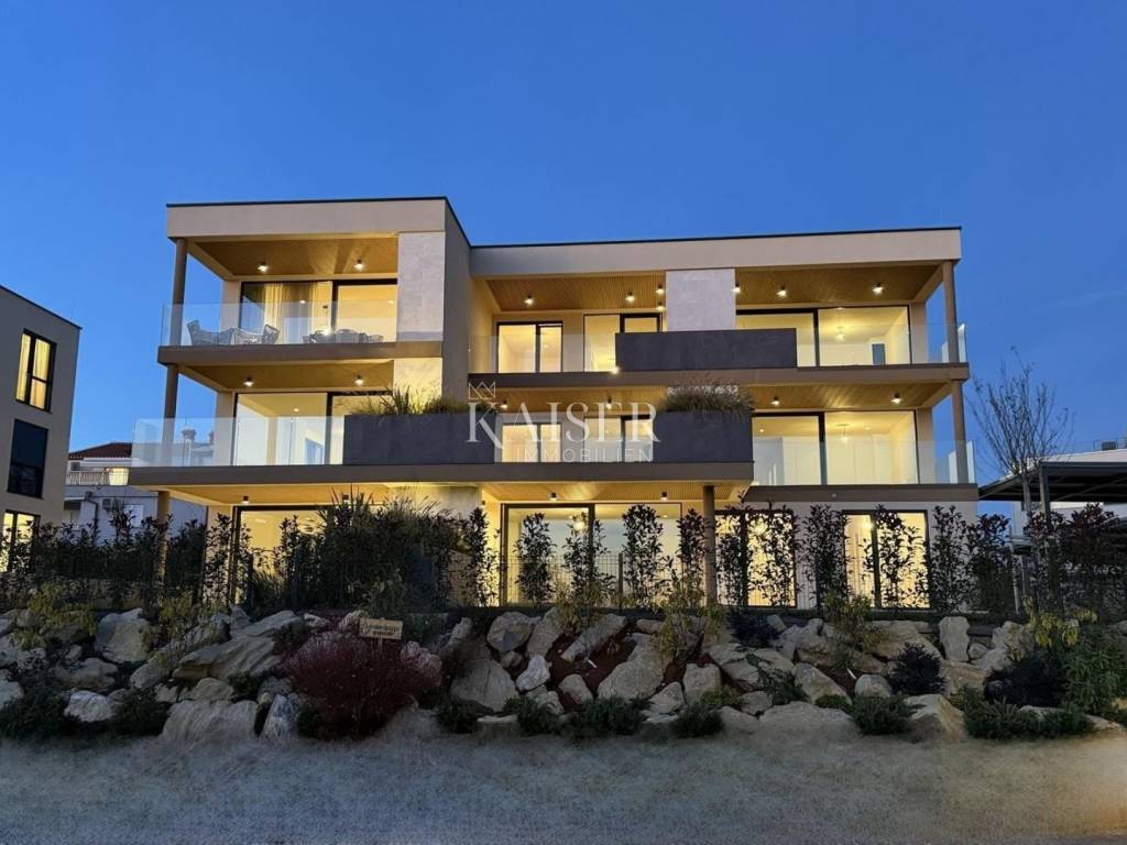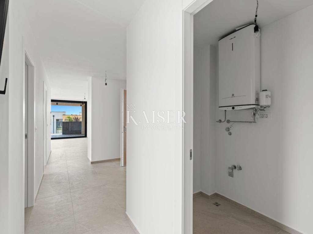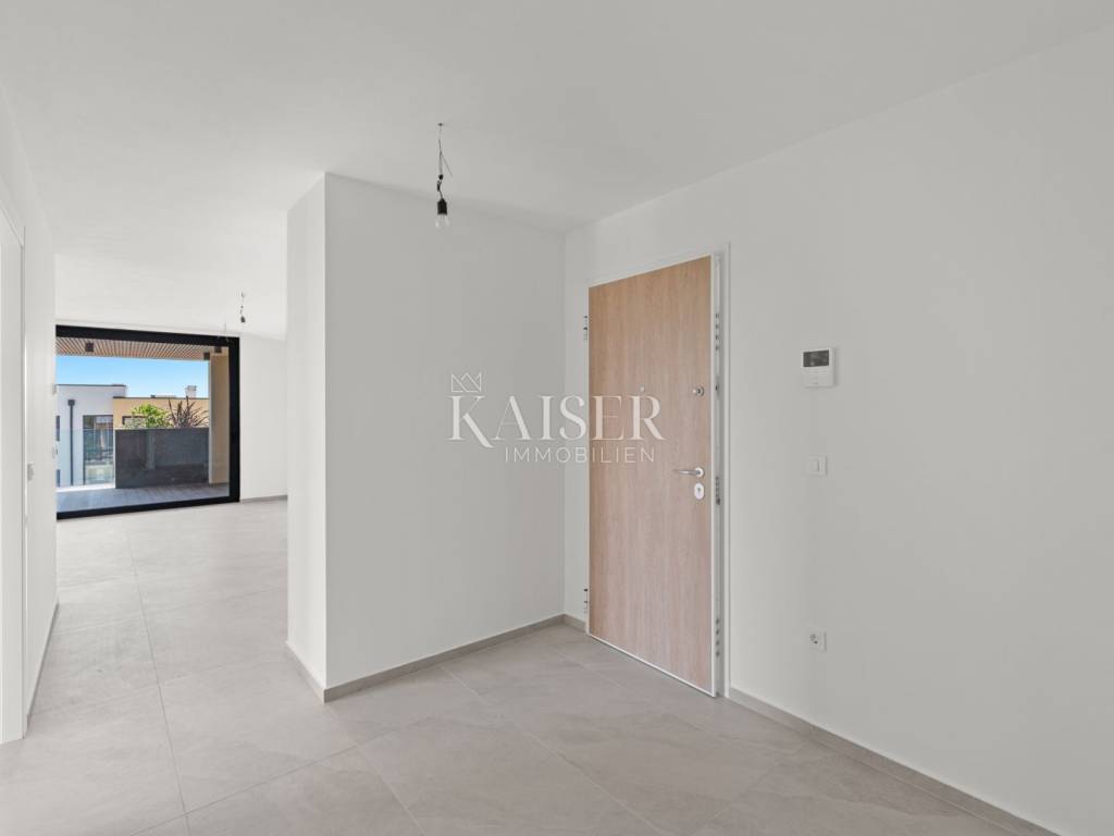 Apartment B-2-D Kaiser Immobilien offers for sale a luxurious new building in Novigrad, only 800 m from the sea, beautiful beaches and the historic center of the city. Novigrad is well connected by traffic to all parts of Istria, as well as to neighboring countries, and is only a 5-minute drive away by highway. The construction includes 2 separate buildings with a total of 16 apartments. Both buildings are spread over 3 floors. and have a sea view. The parking space is provided with 24 covered parking spaces and a storage room for each apartment. The facilities will be equipped with an elevator, video surveillance of the entrance area, and space for storing bicycles. These high-end apartments in the elite part of Novigrad will be equipped with top-quality Italian ceramics that fit perfectly into any type of design, and with first-class oak parquet, the whole story will take on its final make-up style. Catalano Italy 52 toilet bowls with soft close system, Inda Village sink with Paffoni Light basin mixer, Paffoni Light shower mixer with rain effect and handle and Novellini Kali 2P shower door are installed. Windows and panoramic glazed walls are made of high-quality PVC/ALU profiles glazed with double IZO glass, with aluminum shutters with electric motor drive. The storage rooms are equipped with mechanical and natural ventilation, first-class ceramics and polished and painted walls with semi-dispersive paint. Garages and parking spaces will have a main entrance ramp with a remote-controlled electric motor, preparation for chargers for electric vehicles, video surveillance and a video intercom. Anti-burglary and fire-resistant entrance doors increase the level of security and ensure peace of mind. Landscaping is planned with the planting of Mediterranean plants and trees, which will raise the entire project to a higher level of horticultural decoration of this beautiful Mediterranean residence for our future buyers. An automatic irrigation system is installed for the apartments on the ground floor and especially for all common parts of the building. Pedestrian and vehicular sections will be paved, and rainwater drainage will be implemented. Underfloor heating throughout the apartment and a DAIKIN multi split heating and cooling system for each room. Remote control of the heating and cooling system via smart phone. Pvc decking floor coverings on the terraces and covering the ceiling of the terrace with slats. This beautiful apartment is located on the second floor, accessible by elevator. The living area of the apartment is 77 m2, which includes an entrance hall, living room and kitchen, 2 bedrooms, 2 bathrooms and a storage room where you can place a washing machine and dryer and other household appliances that you use every day. The apartment has a covered terrace of 20 m2 with an outdoor kitchen and space for a large table. The apartment also has an external storage room of 5 m2 and two parking spaces. The works have already started in March 2024, and it is expected that this luxury project will be ready for you in May 2025. Don't miss your chance to be a part of this enchanting seaside paradise in the making. The buyer is exempt from paying real estate sales tax in the amount of 3%. The stated price in the amount of EUR 488,000.00 refers to the square footage with coefficients included. Agency commission is 3%+VAT Distance: Pula Airport - 80 km Ljubljana - 136 km Munich - 537 km Vienna/Vienna - 518 km Prague - 844 km For additional information and viewing, contact your agent by email: dean.cvitko@kaiser-immobilien .hr or phone number: 00385 91 5284449