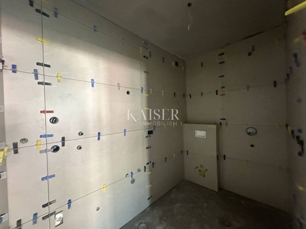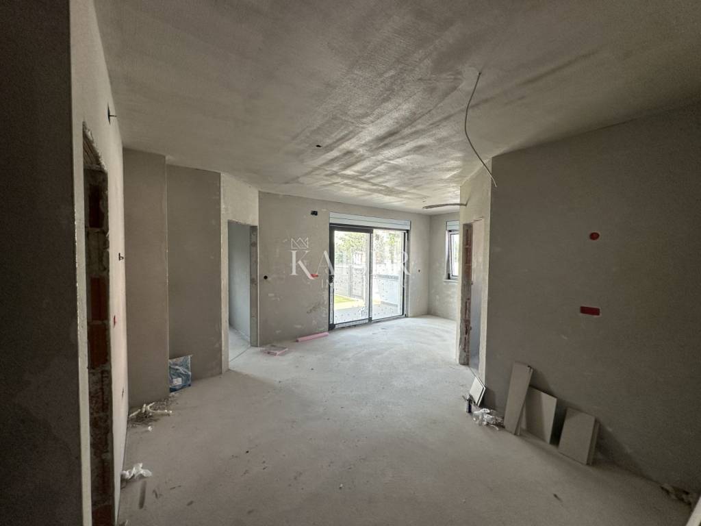 For sale is an attractive two-bedroom apartment on the ground floor of a newer, well-built building with only 9 apartments, located in a prime location in the town of Pag – just 70 meters from the sea and 200 meters from the town center and sandy beaches. Located in a quiet part of town, the apartment offers the perfect balance between privacy and proximity to all amenities. Pag is known for its centuries-old lacemaking tradition, clear sea, rich gastronomic offer (the famous Pag cheese and lamb), but also its increasing popularity as a destination for vacation and family life. The apartment located on the ground floor of a smaller residential building with a total of nine apartments consists of an entrance hall, two bedrooms, a bathroom with underfloor heating, a utility room, a spacious living room connected to the kitchen and dining room, and a covered terrace leading to a private garden of 26.5 m², perfect for relaxing, dining outdoors, or as a safe space for children. The building was built with an emphasis on quality, and the apartment is equipped with three-layer PVC joinery in anthracite color with built-in electric shutters, which ensures good thermal and sound insulation and an additional level of comfort and security. Each room has its own air conditioning unit, which allows for individual temperature control and high energy efficiency. The bathroom is equipped with underfloor heating, and a chimney is routed through the apartment, which allows for the installation of a stove or fireplace according to the future owner's wishes. The apartment comes with one designated parking space, with the possibility of installing a charging station for electric vehicles, which further increases the value and functionality of the property. The floor plan of the apartment with the areas is under the pictures. The town of Pag offers everything you need for a comfortable life and a relaxing vacation: restaurants, shops, cultural heritage, seaside promenades and the clean Adriatic Sea. The apartment is located in an attractive and sought-after location, which makes it an excellent investment. The agency's commission for the buyer is 3% + VAT and is paid in the case of purchasing the property, upon conclusion of the first legal act. Contact us with confidence for more information and to arrange a viewing. Phone: +385915404646 Email: vedran@kaiser-immobilien.hr