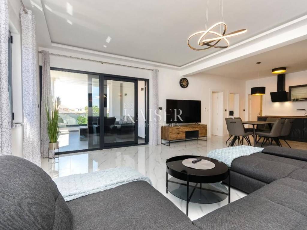 Kaiser immobilien offers a beautiful two-bedroom apartment in a newer urban villa, located in an absolutely perfect location in Srima, just 50 meters from the sea and a beautifully landscaped beach. This property offers an ideal combination of modern architecture, comfort and proximity to the sea, making it a perfect opportunity for those looking for a holiday apartment or investment with excellent potential for tourist rental. ABOUT THE APARTMENT: This elegant apartment, located on the ground floor of a modern building, is designed to provide maximum functionality and comfort, with an emphasis on open views and plenty of natural light. Location: Srima, Vodice (2nd row to the sea) Apartment type: Two-bedroom apartment Layout: The apartment consists of a spacious "open space" living room with kitchen and dining room, two comfortable bedrooms, modern bathroom and balcony/terrace. Parking: The apartment has a secured parking space within the landscaped garden. EQUIPMENT AND QUALITY: Modern construction