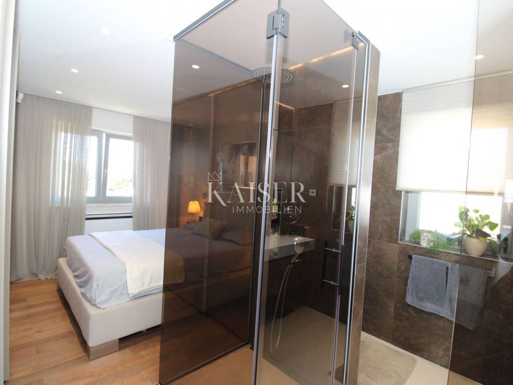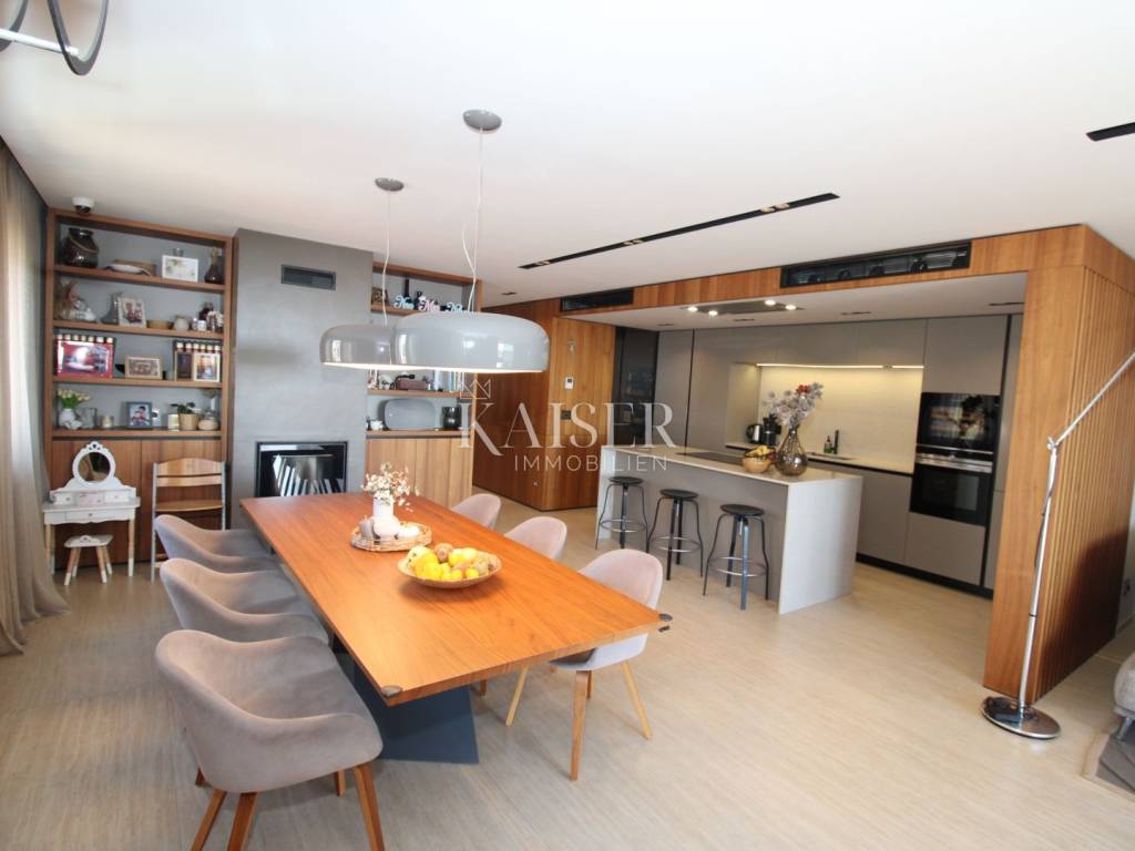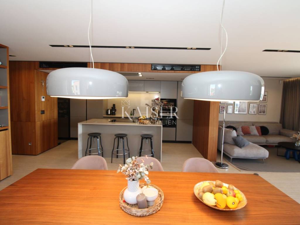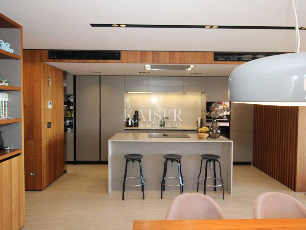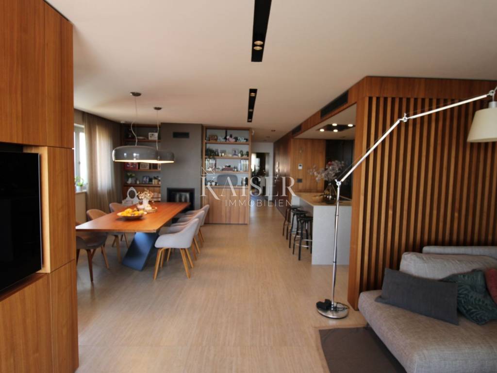 Kaiser Immobilien presents a luxury designer apartment in the beautiful fishing town of Novigrad in Istria. The luxuriously decorated and furnished apartment of 119 m2, or 132 m2 with covered terraces included, offers a spacious and functional living space, ideal for those who appreciate elegance, comfort and the benefits of modern technology. The apartment is located in one of the most attractive parts of Novigrad, a town known for its authentic Mediterranean atmosphere, beautiful beaches and rich cultural heritage. The terraces of the apartment offer a beautiful panoramic view of the sea, allowing you to enjoy romantic sunsets... The apartment is luxuriously equipped and furnished with custom-made furniture, which ensures a high level of functionality and aesthetics. The space has been carefully designed to make the most of natural light and sea views. Living room with an impressive 7.5-meter glass wall, which opens onto the terrace, creating an uninterrupted connection between the interior and exterior. The glass wall has ALU profiles with thermal insulation and a central opening of 3.75 meters. The kitchen is modernly equipped with top-quality Cottod'Este Kerlit ceramics, which extends into the living room, creating a unique and luxurious look. The bedrooms have American walnut parquet, which gives warmth and elegance to the space. The bathrooms are equipped with top-quality ceramics and designer details. The apartment has covered terraces that create an oasis for relaxation and socializing: the main terrace is covered with a Soltec Agava bioclimatic pergola, equipped with a screen curtain and LED lighting in the ceiling, which allows for comfortable use of the terrace throughout the year. The floor on the terrace is made of full-profile decking with hidden drainage, which ensures durability and aesthetics. The apartment is equipped with the most modern technological solutions to ensure maximum comfort and security: PARADOX alarm system with sensors in all rooms. Video surveillance with cameras in all rooms. Optical cable for high-speed internet and TV. Satellite and antenna connection for TV. Heating and cooling - Mitsubishi Electric underfloor heating and ceiling cooling system, which ensures optimal climate throughout the year. The fan coils in the rooms are Riello Helioterm, and the Siemens RDG100T and Fantini Cosmi CH 110 room thermostats allow precise temperature control. The Piazzetta IP 9 fireplace adds warmth and a romantic atmosphere to the space. The heat pump with Grundfos circulation pump ensures efficient hot water preparation. Hidden doors in the filomuro style, including glass doors for the pantry and technical room, add a modern and sophisticated look. The apartment comes with 2 parking spaces - a rarity in such locations and an additional convenience and comfort for the owners. This apartment offers the perfect combination of luxury, modern technology and beautiful surroundings. It is an ideal solution for those looking for a top standard of living in the pearl of Istria - Novigrad. Ljubljana: 140 km Vienna: 520 km Budapest: 600 Venice Airport: 200 km Pula Airport: 70 km The buyer's brokerage fee is 3% + VAT. The fee covers all services related to the purchase and is paid only in the case of purchasing a property, when concluding the first legal transaction. Feel free to contact us for additional information and to arrange a tour of the property: Damir Mlacović e-mail: damir@kaiser-immobilien.hr phone: +385-98-339-933