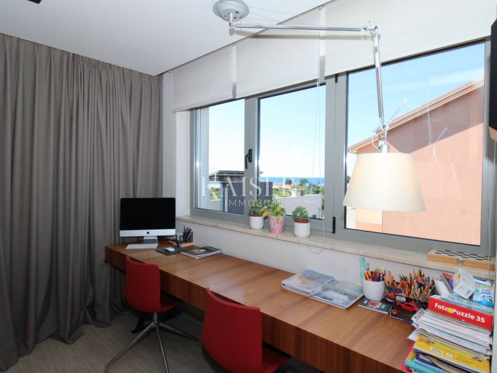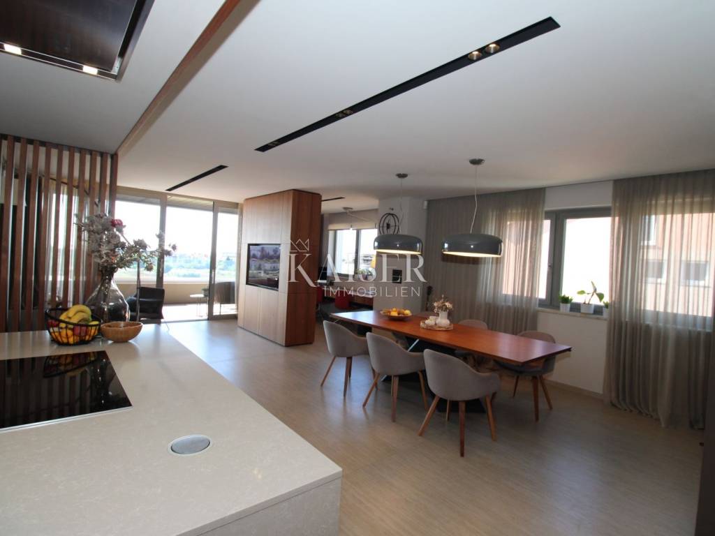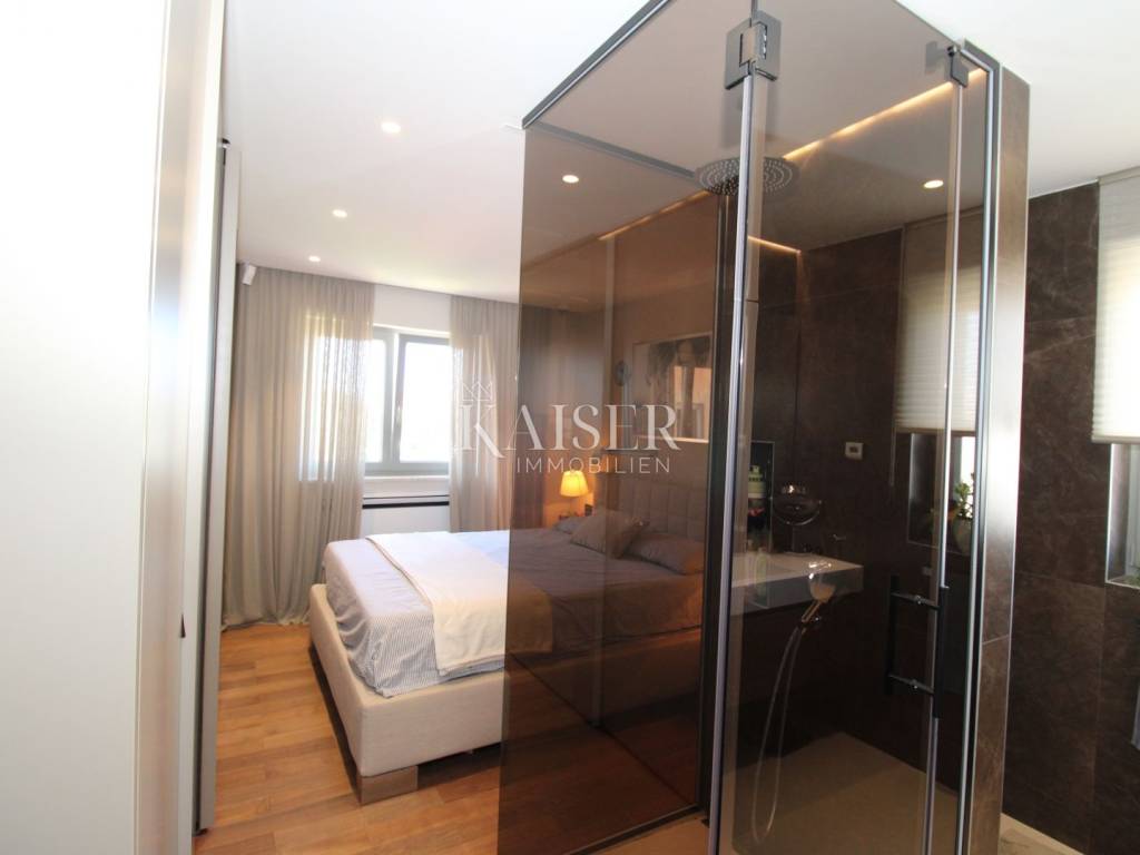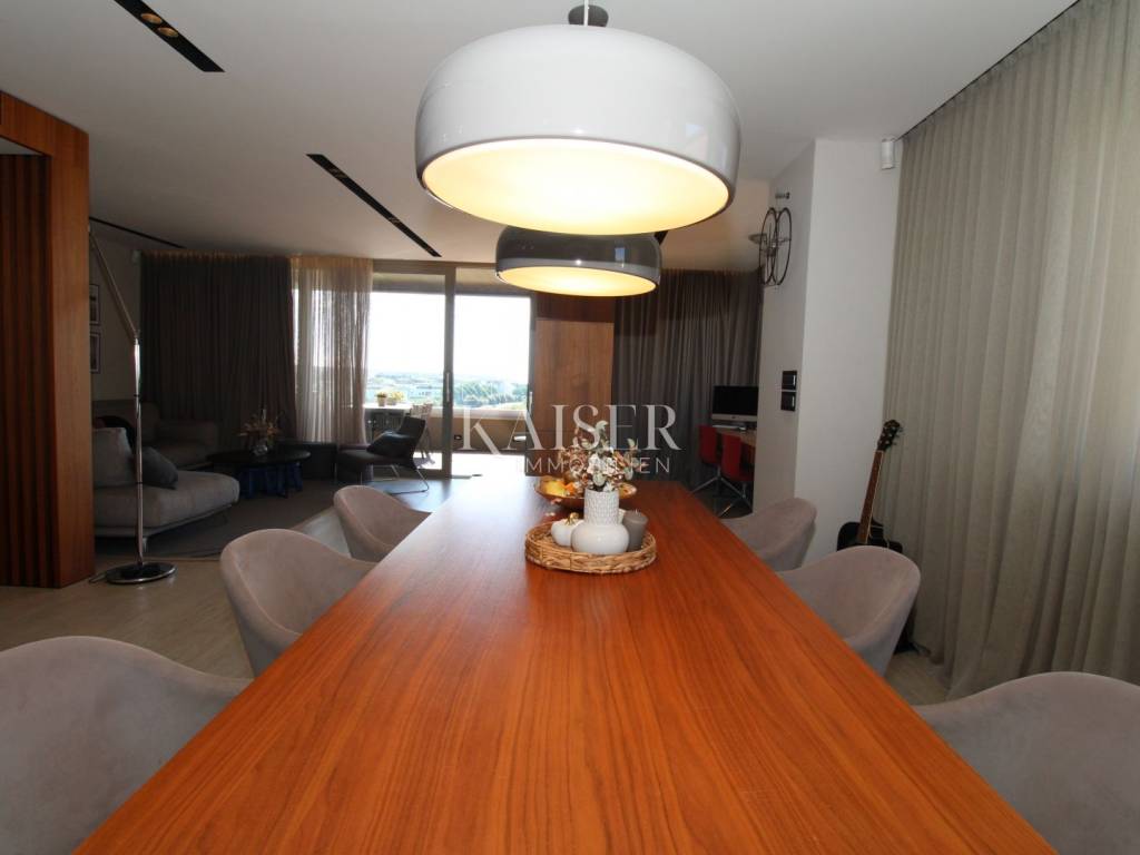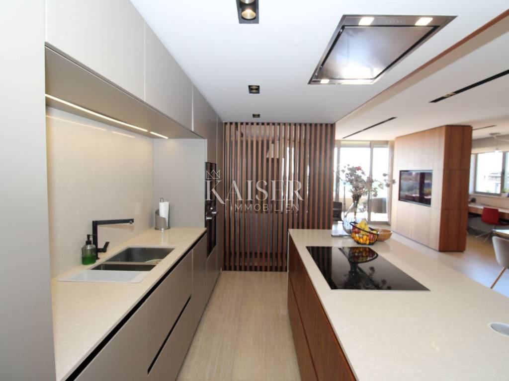 Kaiser Immobilien presents a luxury designer apartment in the beautiful fishing town of Novigrad in Istria. The luxuriously decorated and furnished apartment of 119 m2, or 132 m2 with covered terraces included, offers a spacious and functional living space, ideal for those who appreciate elegance, comfort and the benefits of modern technology. The apartment is located in one of the most attractive parts of Novigrad, a town known for its authentic Mediterranean atmosphere, beautiful beaches and rich cultural heritage. The terraces of the apartment offer a beautiful panoramic view of the sea, allowing you to enjoy romantic sunsets... The apartment is luxuriously equipped and furnished with custom-made furniture, which ensures a high level of functionality and aesthetics. The space has been carefully designed to make the most of natural light and sea views. Living room with an impressive 7.5-meter glass wall, which opens onto the terrace, creating an uninterrupted connection between the interior and exterior. The glass wall has ALU profiles with thermal insulation and a central opening of 3.75 meters. The kitchen is modernly equipped with top-quality Cottod'Este Kerlit ceramics, which extends into the living room, creating a unique and luxurious look. The bedrooms have American walnut parquet, which gives warmth and elegance to the space. The bathrooms are equipped with top-quality ceramics and designer details. The apartment has covered terraces that create an oasis for relaxation and socializing: the main terrace is covered with a Soltec Agava bioclimatic pergola, equipped with a screen curtain and LED lighting in the ceiling, which allows for comfortable use of the terrace throughout the year. The floor on the terrace is made of full-profile decking with hidden drainage, which ensures durability and aesthetics. The apartment is equipped with the most modern technological solutions to ensure maximum comfort and security: PARADOX alarm system with sensors in all rooms. Video surveillance with cameras in all rooms. Optical cable for high-speed internet and TV. Satellite and antenna connection for TV. Heating and cooling - Mitsubishi Electric underfloor heating and ceiling cooling system, which ensures optimal climate throughout the year. The fan coils in the rooms are Riello Helioterm, and the Siemens RDG100T and Fantini Cosmi CH 110 room thermostats allow precise temperature control. The Piazzetta IP 9 fireplace adds warmth and a romantic atmosphere to the space. The heat pump with Grundfos circulation pump ensures efficient hot water preparation. Hidden doors in the filomuro style, including glass doors for the pantry and technical room, add a modern and sophisticated look. The apartment comes with 2 parking spaces - a rarity in such locations and an additional convenience and comfort for the owners. This apartment offers the perfect combination of luxury, modern technology and beautiful surroundings. It is an ideal solution for those looking for a top standard of living in the pearl of Istria - Novigrad. Ljubljana: 140 km Vienna: 520 km Budapest: 600 Venice Airport: 200 km Pula Airport: 70 km The buyer's brokerage fee is 3% + VAT. The fee covers all services related to the purchase and is paid only in the case of purchasing a property, when concluding the first legal transaction. Feel free to contact us for additional information and to arrange a tour of the property: Damir Mlacović e-mail: damir@kaiser-immobilien.hr phone: +385-98-339-933