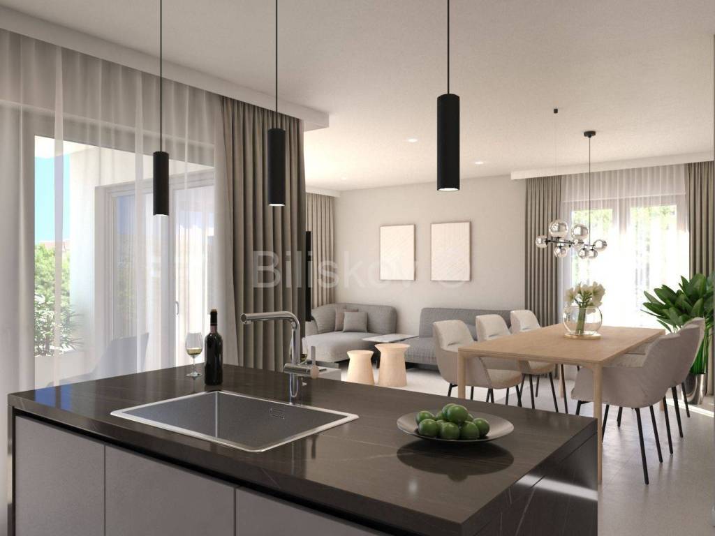For sale is an apartment within an exclusive resort under construction, located in a peaceful area of Kaštela. This semi-gated residential project offers an ideal balance between privacy, comfort, and quick access to urban amenities. Within the resort, a private road is planned that leads directly to the expressway, providing future owners with easy and fast access to their property as well as convenient connections to surrounding cities and key routes.