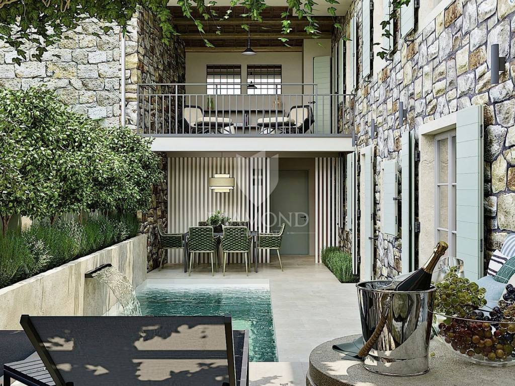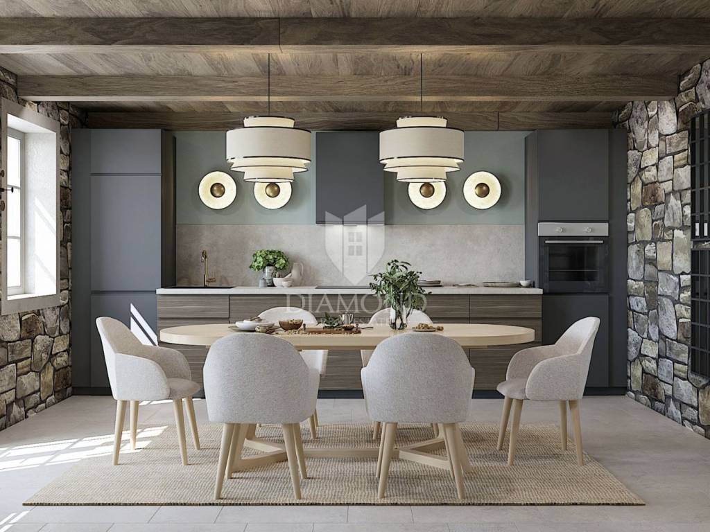 This villa represents an ideal opportunity for those looking for a luxuriously renovated authentic Istrian house with original details, all the amenities for complete enjoyment, but with the convenience of an apartment since it does not have a demanding environment for maintenance.