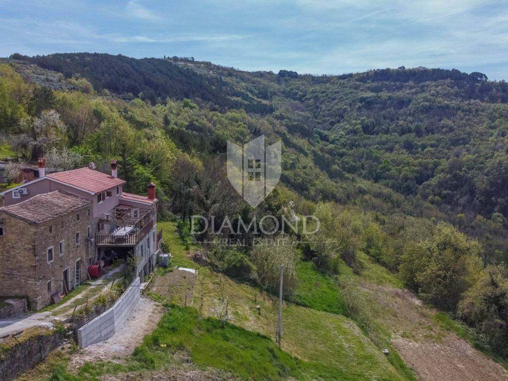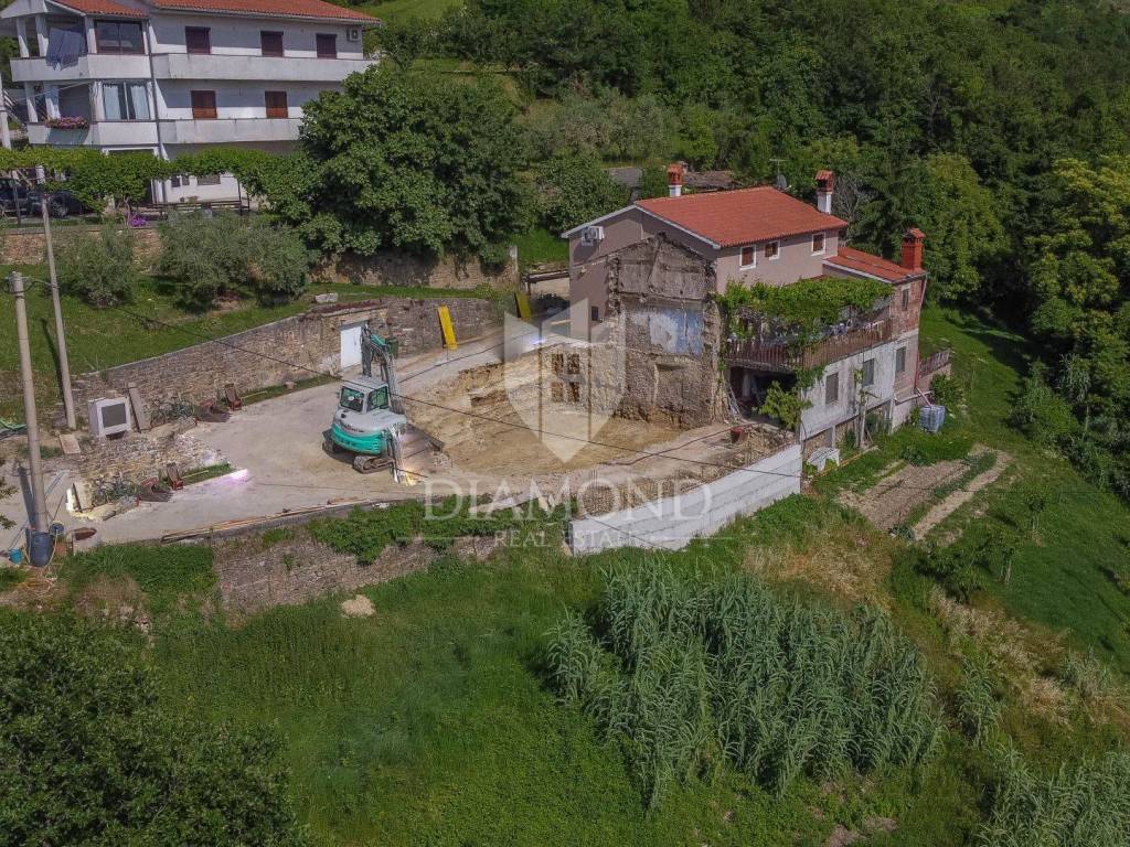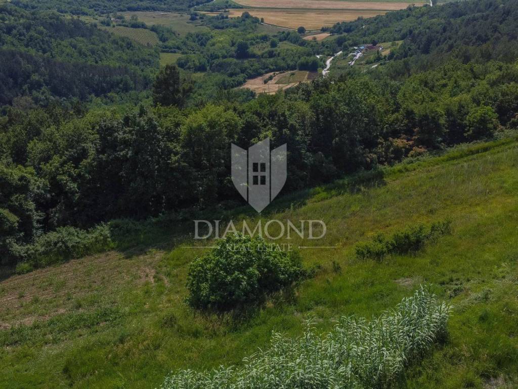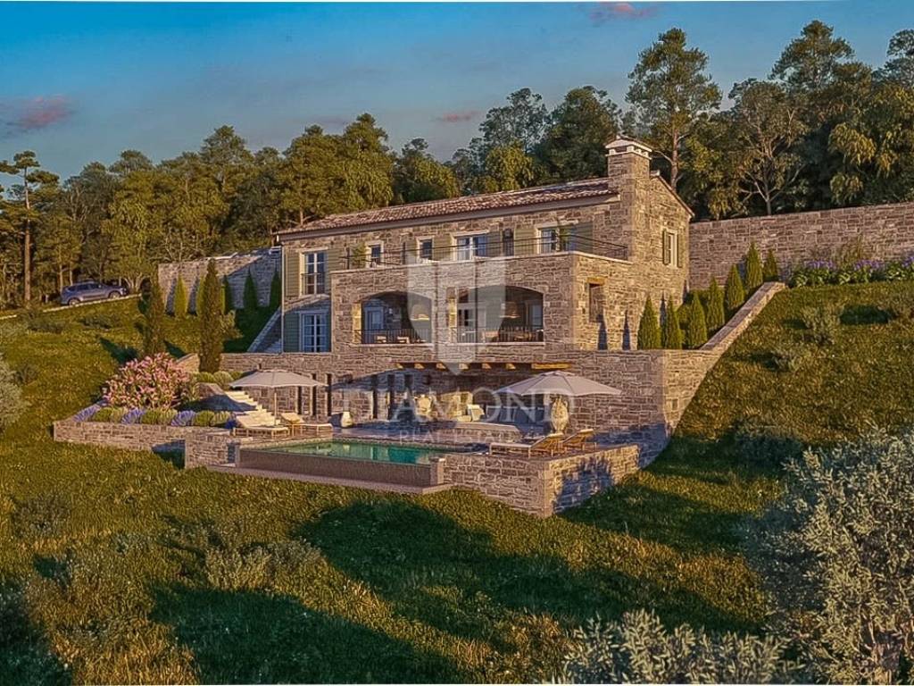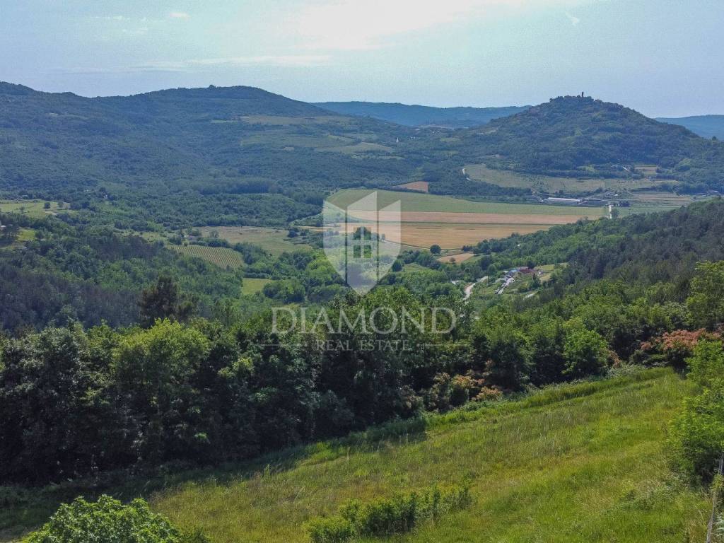 Zemljište se nalazi na rubu građevinske zone i prostire se preko 1800m2. Na zemljištu je predviđena gradnja impozantne kamene vile s bazenom od 250m2 s očaravajućim pogledom na Motovun i okolicu. Vila će se prostirati na zemljištu od preko 700m2 te će se sastoji od 1 spavaće sobe sa vlastitom kupaonicom u prizemlju, prostranog dnevnog boravka, kuhinje i blagovaonice s izlazom na natkrivenu terasu. Unutarnjim stepenište se dolazi na kat gdje će biti smještene 3 konforne spavaće sobe svaka sa svojom kupaonom. Iz dvije spavaće sobe se izazi na terasu s koje se pruža spektakularan pogled na okoliš, Motovun i vlastiti bazen.