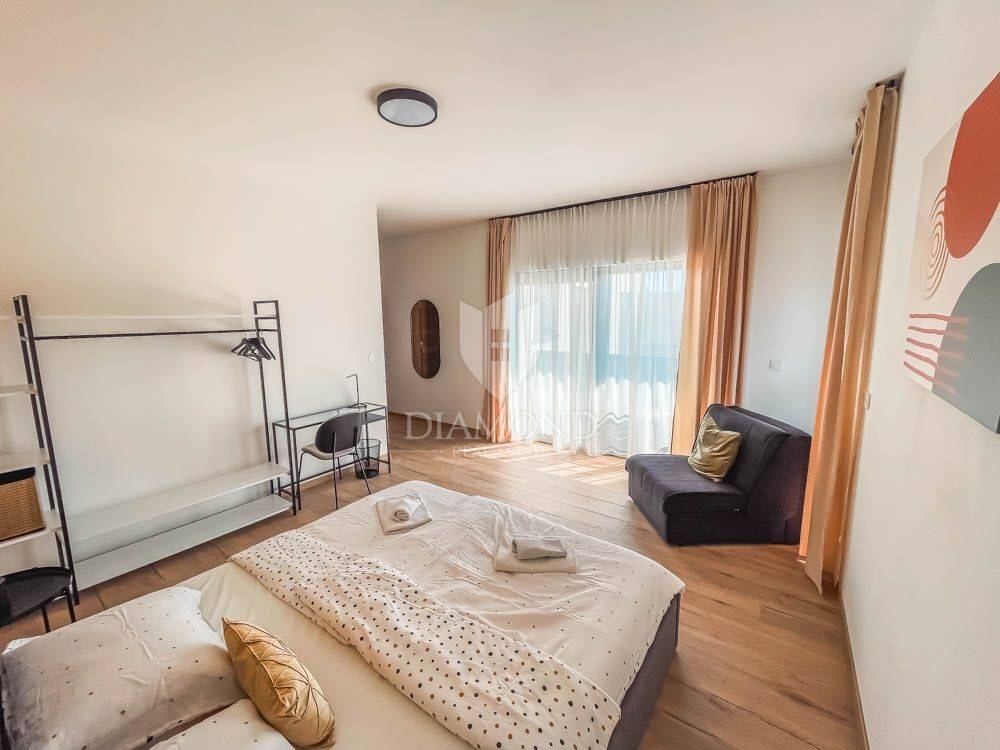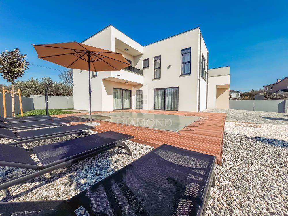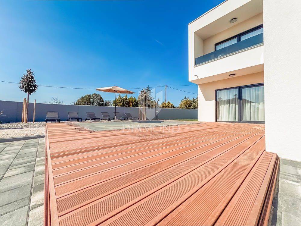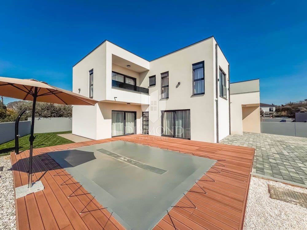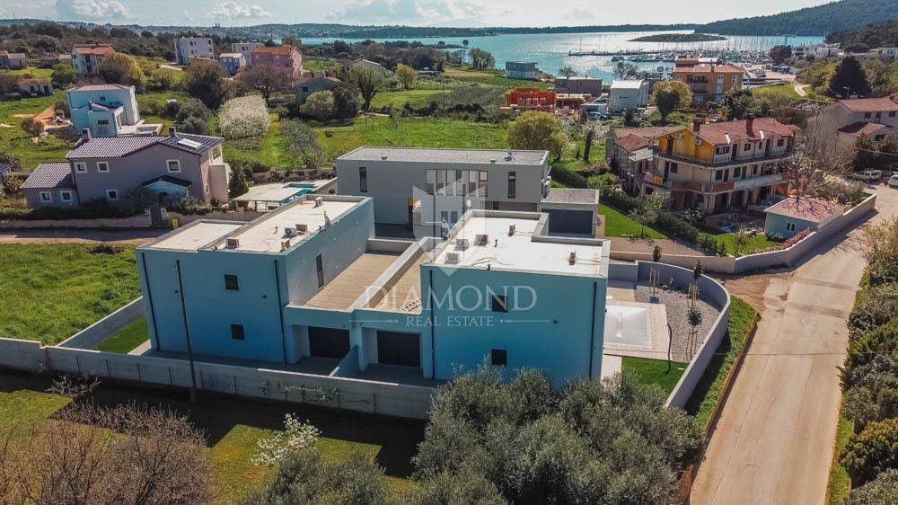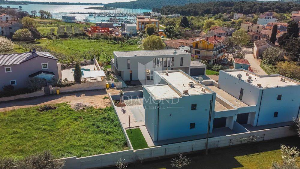 Modern villa for sale located only 5 kilometers from Medulin and Pula. The villa is located in a quiet place known for camping, sandy beaches and water sports. The house offers a wonderful view of the marina and the sea, and the beaches are only a few hundred meters away.