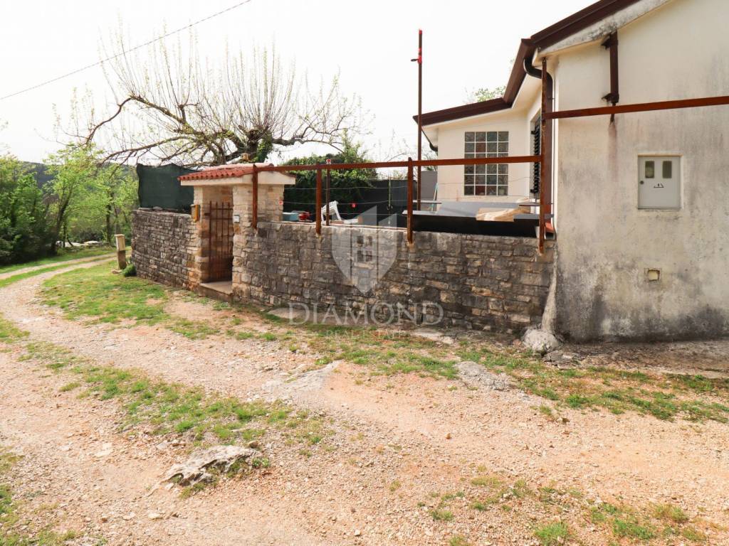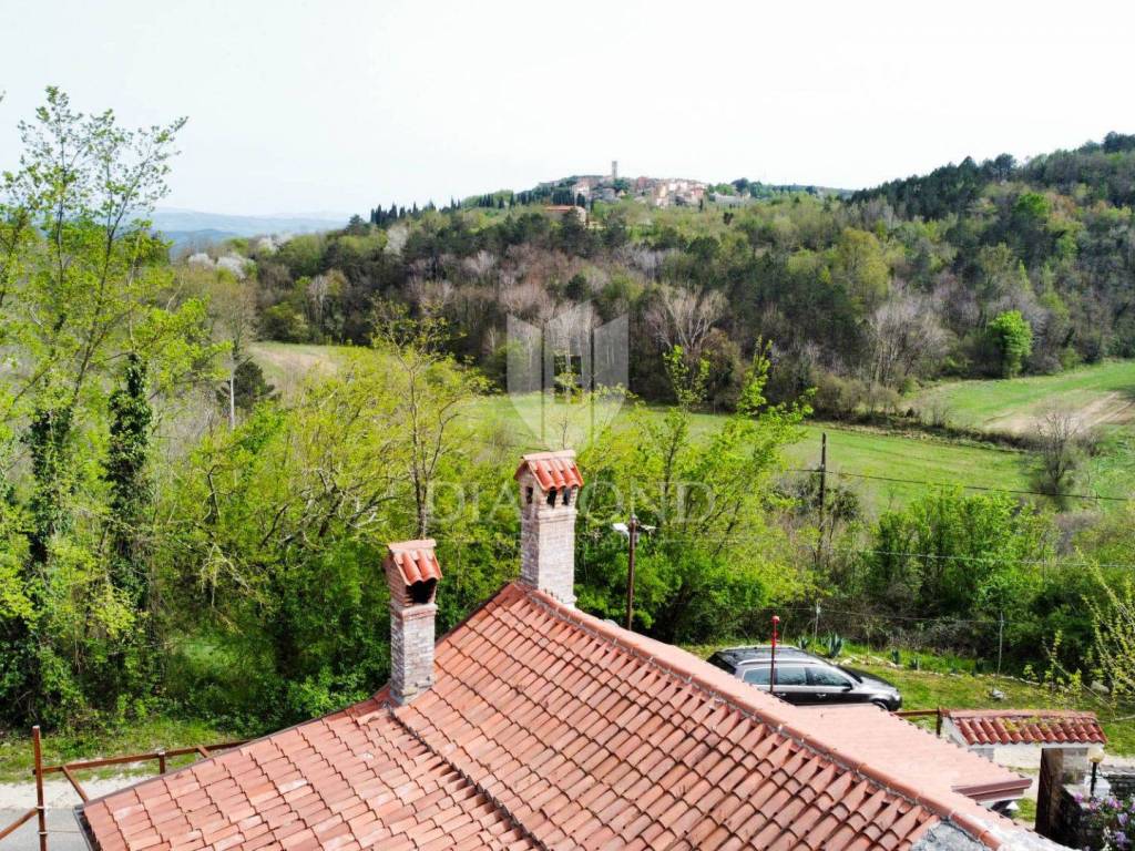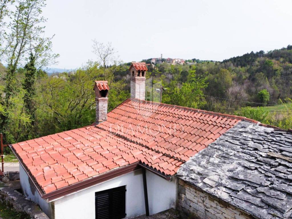 Istria, Oprtalj, Surroundings Beautiful small house for sale with a view of Oprtalj. The house is located in a quiet place surrounded by nature. The house consists of an entrance, a living room with a wood-burning fireplace, a bedroom, a bathroom and a kitchen. The garden is surrounded by a stone wall, from the garden there is a beautiful view of Oprtalj. The property needs to be partially adapted. Heating is by means of central gas and classic wood. It is an opportunity for people who are looking for a small property in nature and who like to stay in the fresh air. In the surrounding area, there are well-known agrotourisms with a large selection of wines and dishes from traditional Istrian cuisine. The location is also ideal for cyclists, there are several cycling paths marked on the maps. The property can be lived in for the whole year or an investment for tourist rental as an additional income. The property is only a few minutes away from the center of Oprtlje, 16 km from Buje, and 29 km from Umag and the sea.