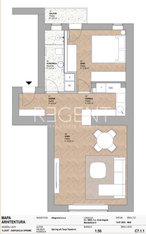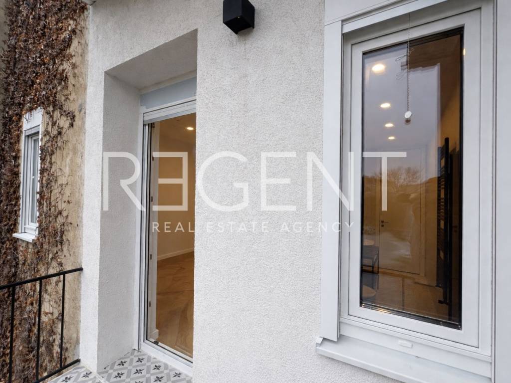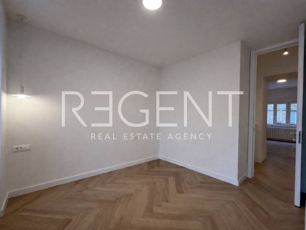 The two-room apartment is located on the first floor of a well-maintained building in Mandaličina Street, in the western part of the center of Zagreb. Situated in one of the most sought-after and well-connected locations, it is ideal for couples, singles, or investors looking for a functional space in a quiet street close to all amenities. The apartment has a total area of 52.33 m², is oriented east–west and consists of a living room with a kitchen and dining area, a bedroom, a bathroom, and a balcony. Thanks to the ceiling height (270–290 cm), the space exudes old-town charm and airiness. Architectural and construction adaptation has resulted in a modern, maximally utilized floor plan. It is equipped with PVC joinery with electric shutters, wooden security doors, floor gas heating and hot water via a Vaillant condensing boiler with a wi-fi module, a Bosch air conditioner, and Aklimat aluminum radiators. The bathroom is equipped with Hansgrohe, Aquaestil, and Tece sanitary ware and FMG and Vives ceramics. The floors are finished with full herringbone oak parquet. The building from the 1930s was built with reinforced concrete construction, received a green sticker after the earthquake, and is regularly maintained. It has a renovated roof, and the renovation of the staircase and facade is planned. The apartment has a storage room in the basement, and along with the apartment, you can take over the rent of a parking space (€40/month) or cancel it according to the buyer's wishes. Mandaličina Street is located in the western part of the city center, between Trešnjevka and Savska cesta, with excellent transport links and proximity to all amenities - public transport, schools, faculties, shops, and business zones. The apartment is in the final phase of complete adaptation, and the completion of works and the possibility of moving in are scheduled for October 2025. The apartment is sold unfurnished, with the possibility of additional custom-made kitchen and furniture according to the buyer's wishes. The design is signed by a licensed architect and the Lebenskunst studio. For more information, feel free to contact us.