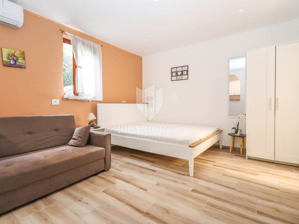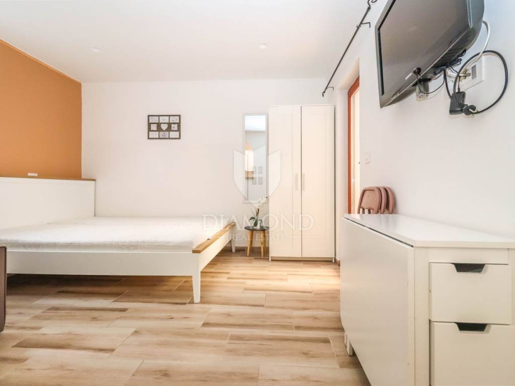 An excellent house for sale in Pješčana Uvala, in a prime location just 200 meters from the sea. It consists of three apartments, each with a separate entrance, making it ideal for tourist rental or family life. The first apartment is a studio that includes a bathroom, kitchen with dining room and living/sleeping area with access to a balcony. The second apartment is a studio, while the third apartment is located in the high attic and includes a living room, kitchen with dining room, bedroom, bathroom and a small terrace in front of the entrance and an additional room in the yard that serves as a storage room and laundry room. The house was completely renovated in 2021 and has a yard of about 100 m2. The apartments are currently being successfully rented and have high guest ratings, which allows the business to continue without additional investments.