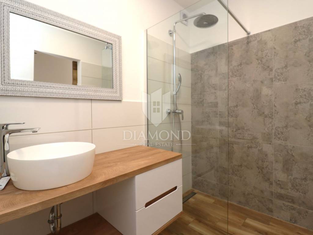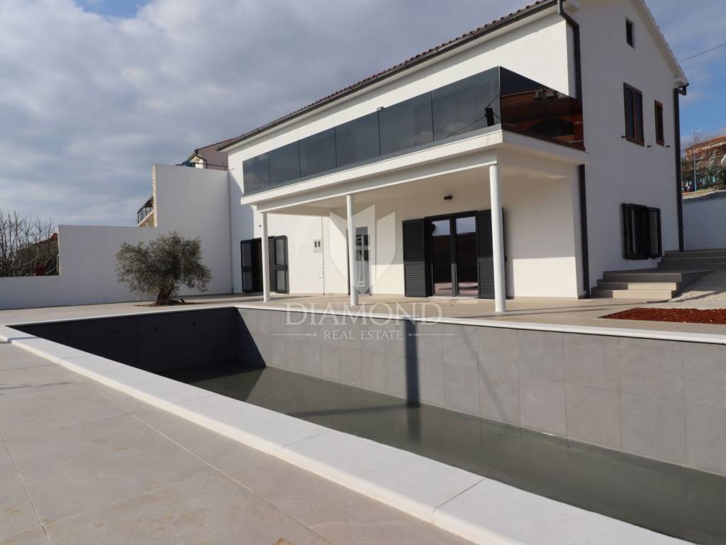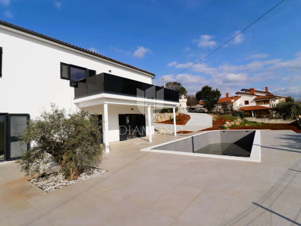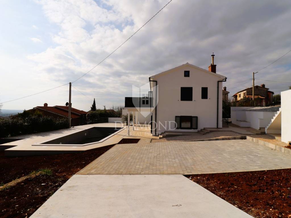 Completely renovated house with two residential units and panoramic sea views - Poreč area In a quiet village near Poreč, just a few kilometers from the coast, a completely renovated house with two separate residential units is for sale, ideal for family life or an investment in tourist rental. The property is surrounded by a landscaped fenced garden of 481 m2 with a swimming pool, garden and additional space for amenities according to the owner's wishes. The house offers a panoramic view of the sea. The ground floor apartment offers a spacious living room connected to the kitchen and dining room, creating a pleasant space for family gatherings, two bedrooms with private bathrooms, while the exit to the landscaped yard with a swimming pool invites you to relax in a peaceful environment. On the first floor there is a second residential unit consisting of an already installed kitchen, dining room and living room, one bedroom, bathroom and master bedroom with private bathroom. The spacious terrace on the first floor is perfect for relaxing with an unforgettable view of the sea and summer evenings. The house is located in a picturesque place that offers all the necessary amenities, while Poreč and the beaches are only a 10-minute drive away. This property offers the perfect combination of comfort, privacy and proximity to the sea - don't miss the opportunity!