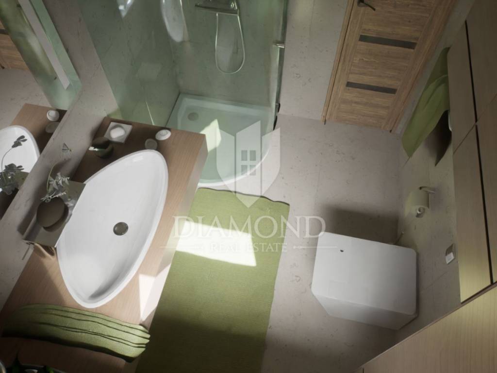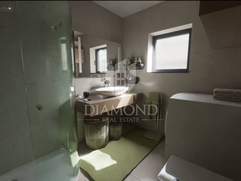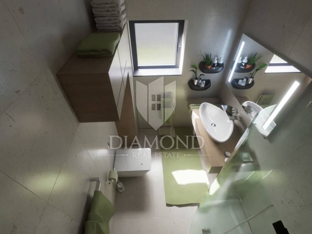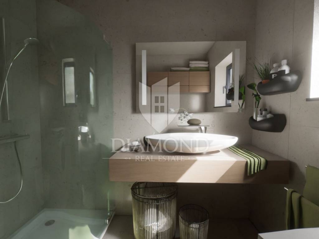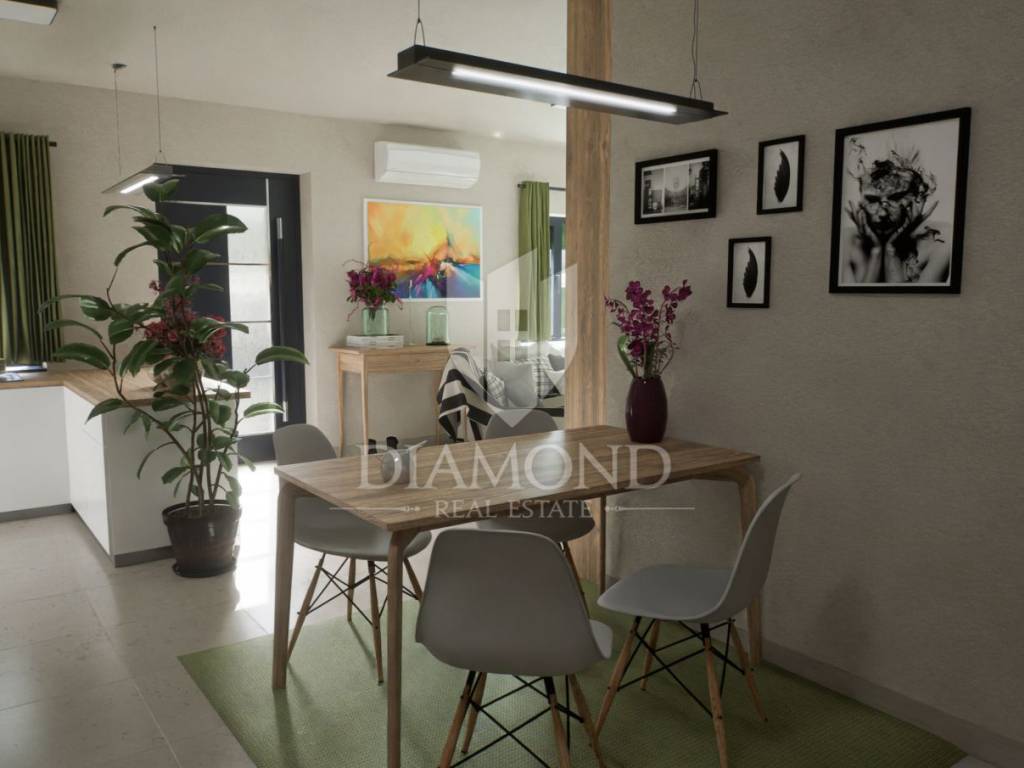 Located in an attractive residential neighborhood on the outskirts of Poreč, in a peaceful and desirable area, the construction of a modern ground floor apartment is beginning. The property is just about one kilometer from the sea and only two kilometers from the city center, making it ideal for those seeking a combination of comfortable living, privacy, and proximity to all essential amenities.